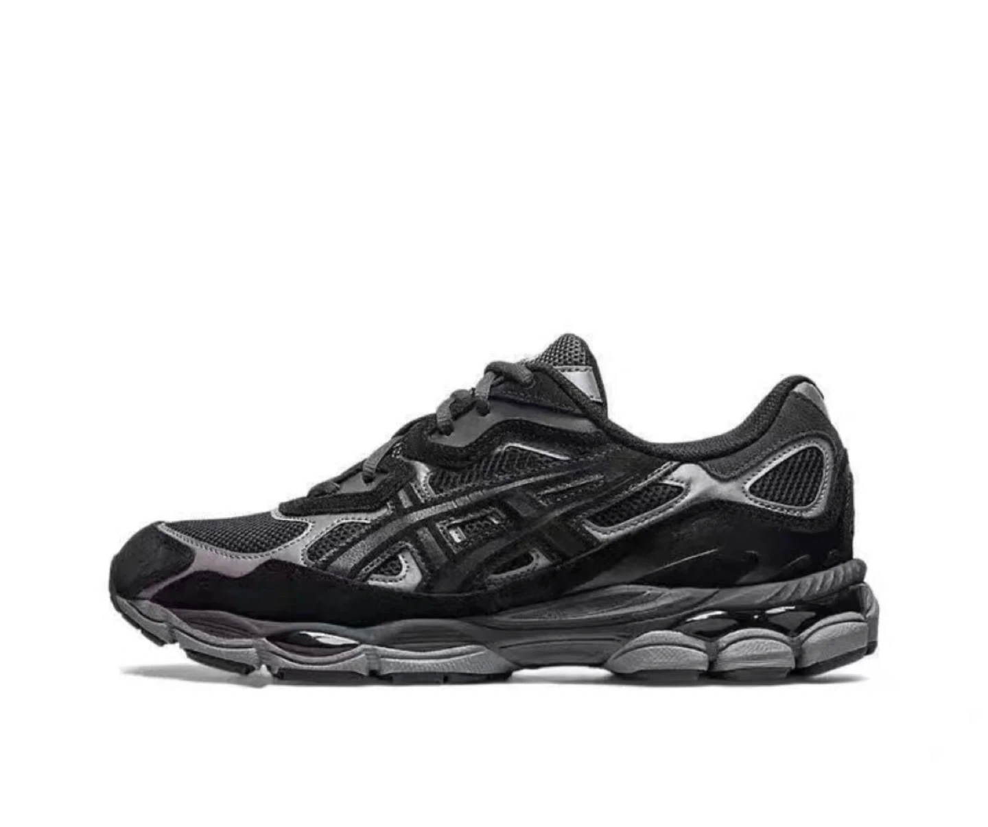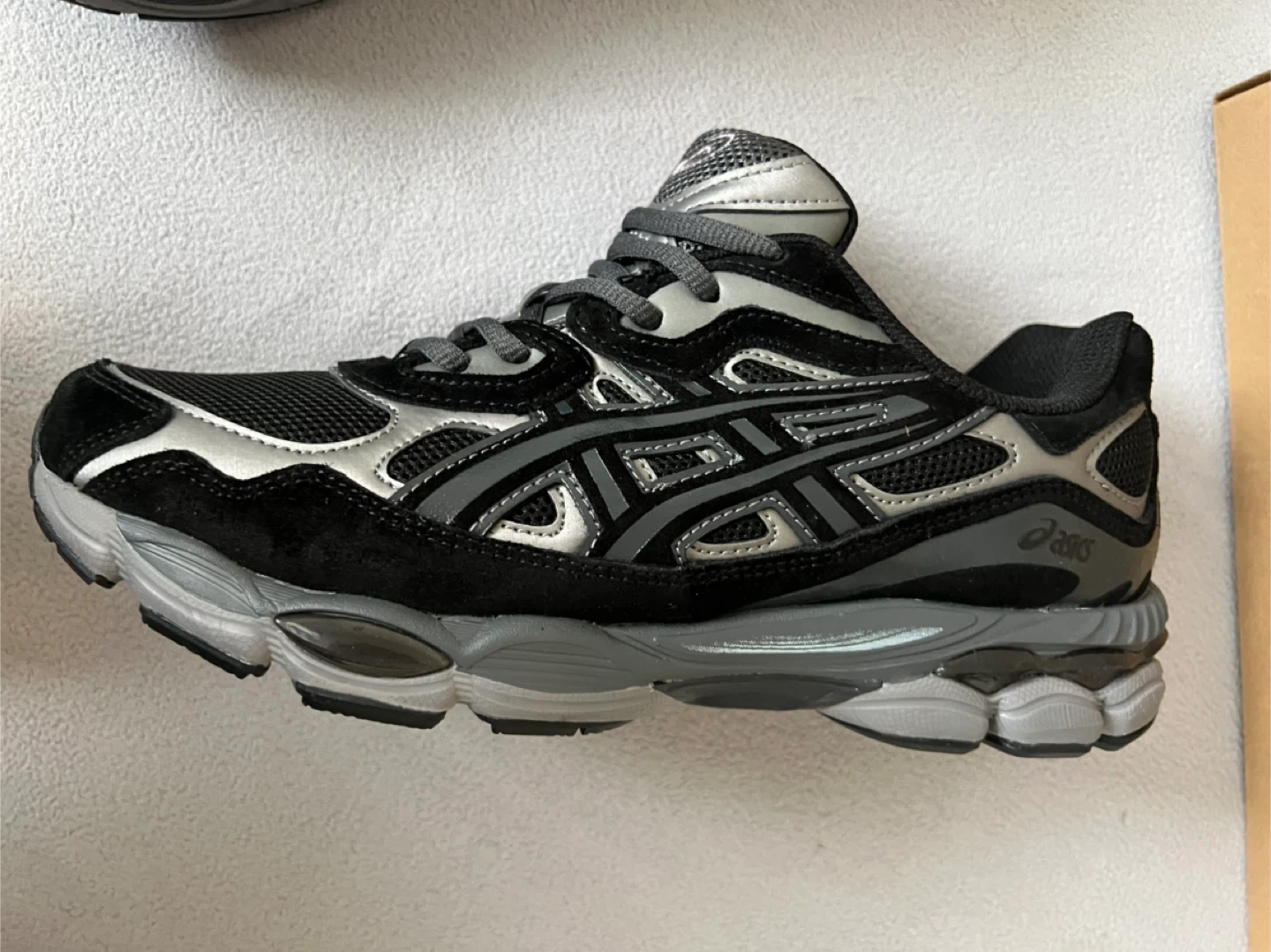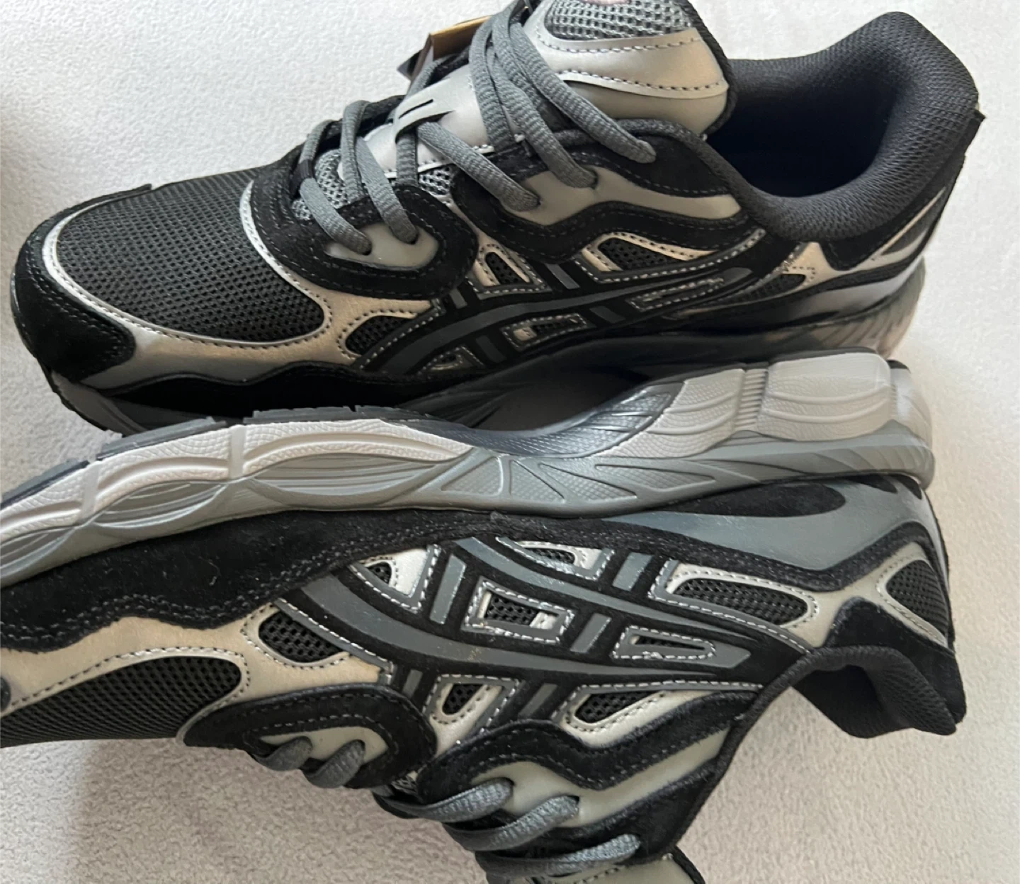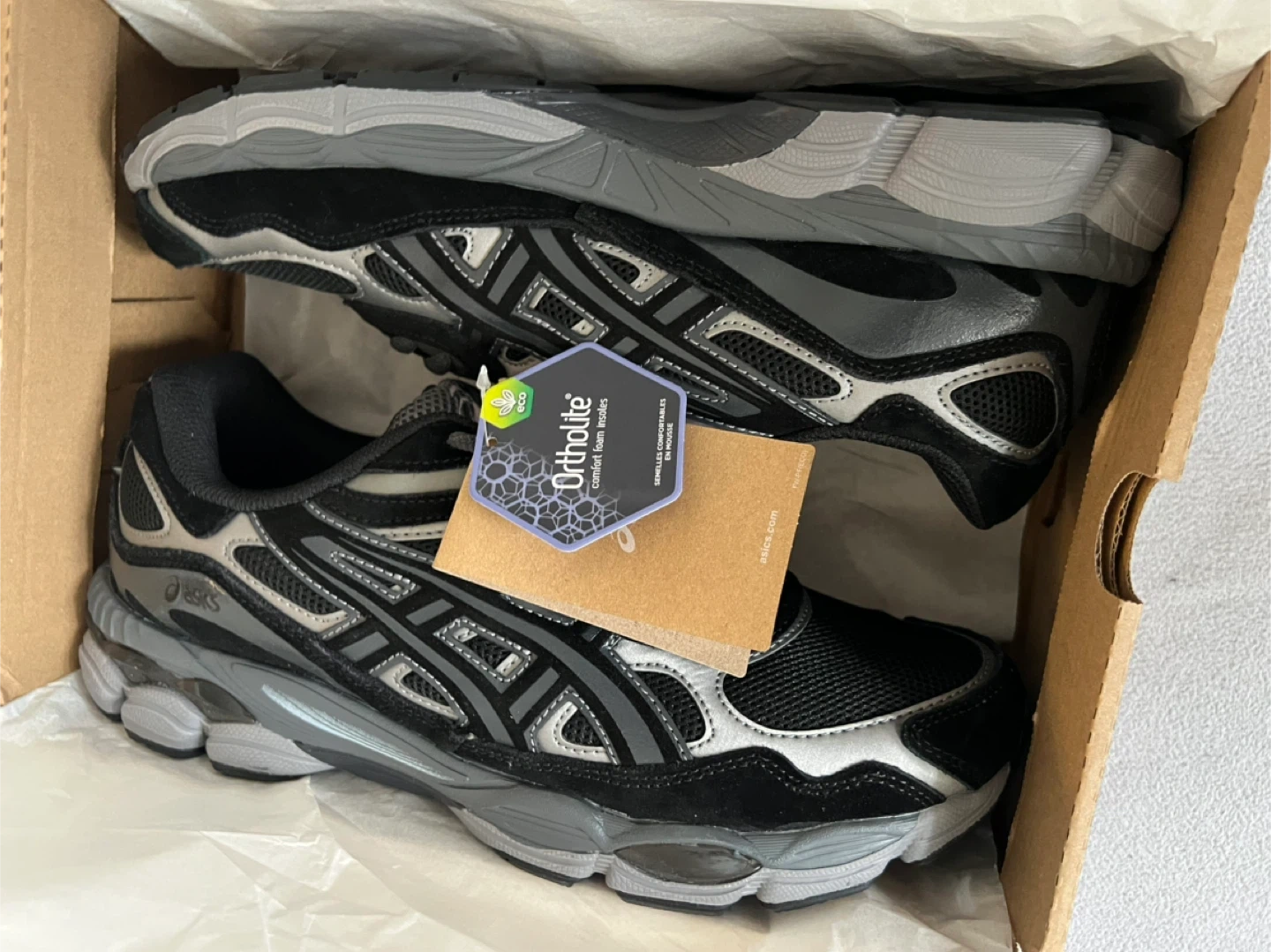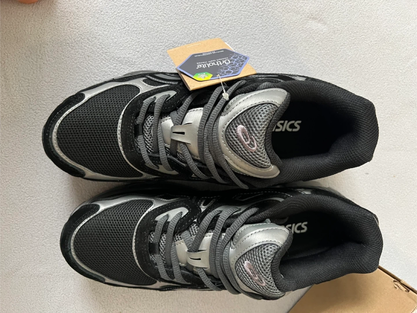 ASICS shoes in black and silver. Features mesh and synthetic upper with rubber outsole. These sneakers are designed for comfort and support during runs. OrthoLite insole included. DM me for more information.