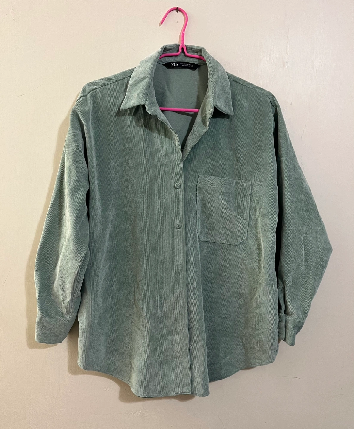 Zara Green Corduroy Button Up Shirt