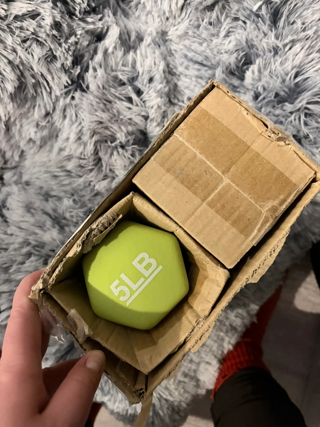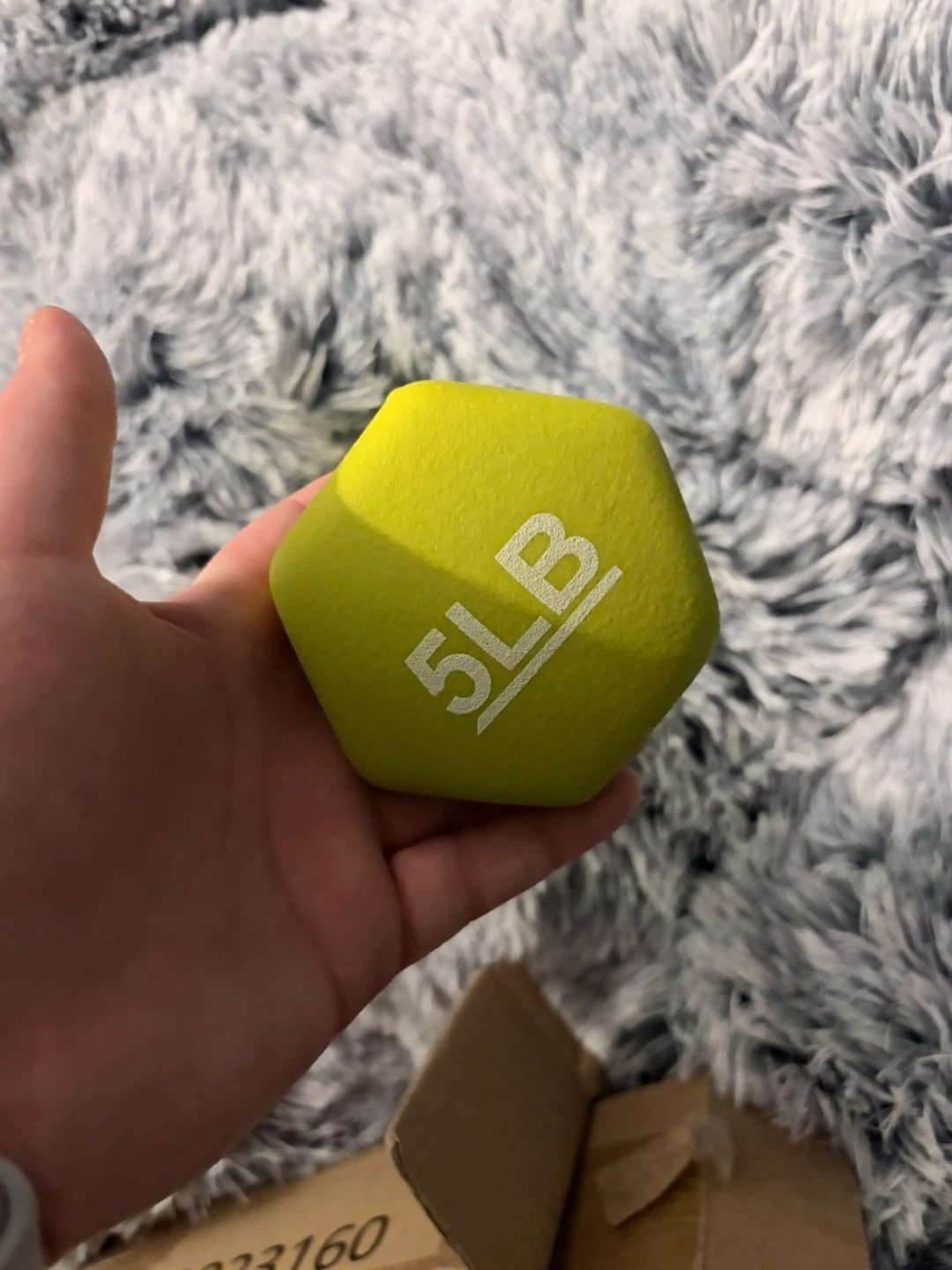 Set of 2 5lb dumbbells. They are bright green and has a hexagonal head to prevent rolling. The handle is shaped for a comfortable grip. This dumbbell is good for home workouts or adding some resistance to your routine.