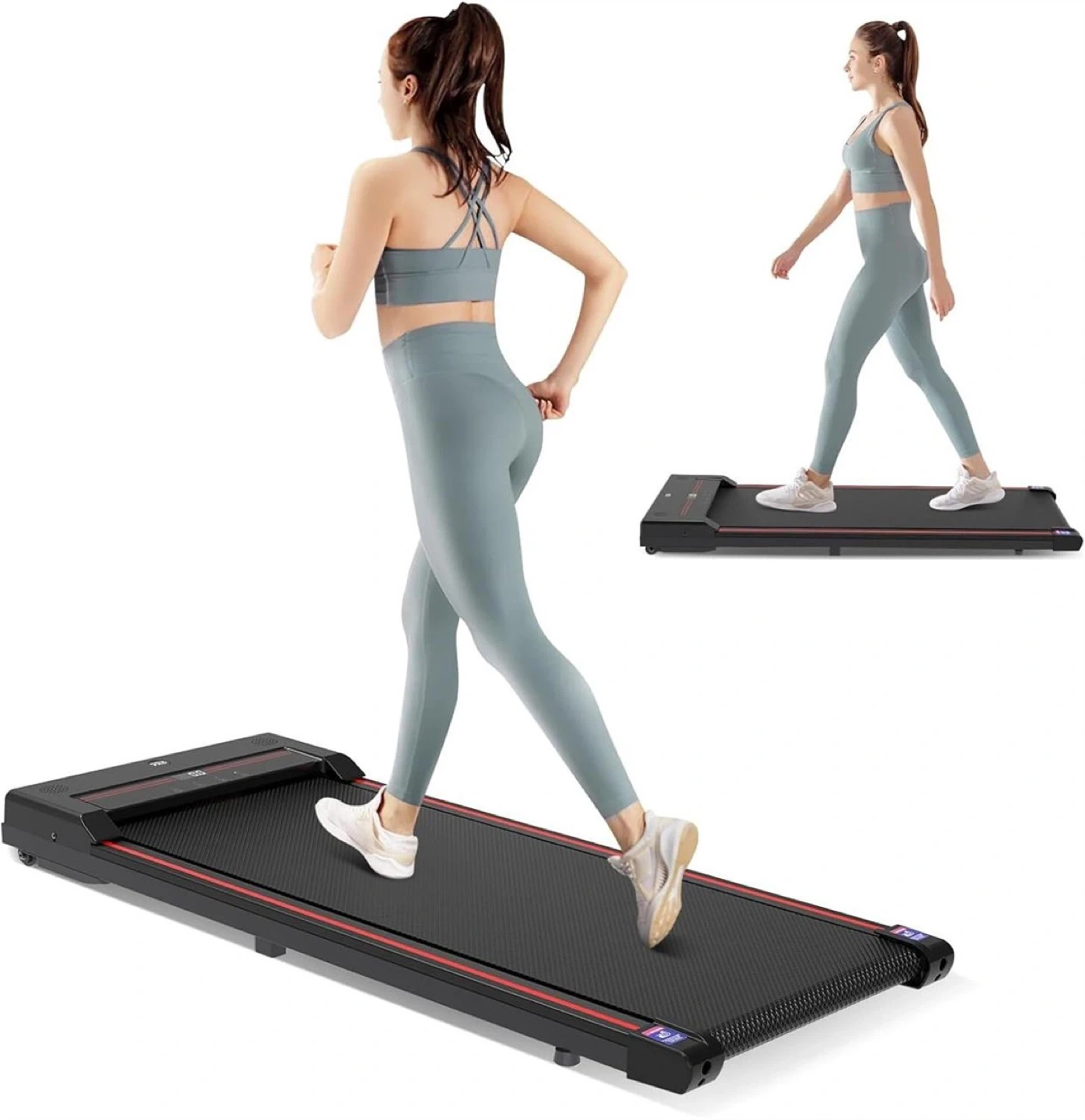 This compact walking treadmill is designed for home use. It features an LED screen that displays real-time data like speed and distance. It's easy to operate and suitable for walking or light jogging.