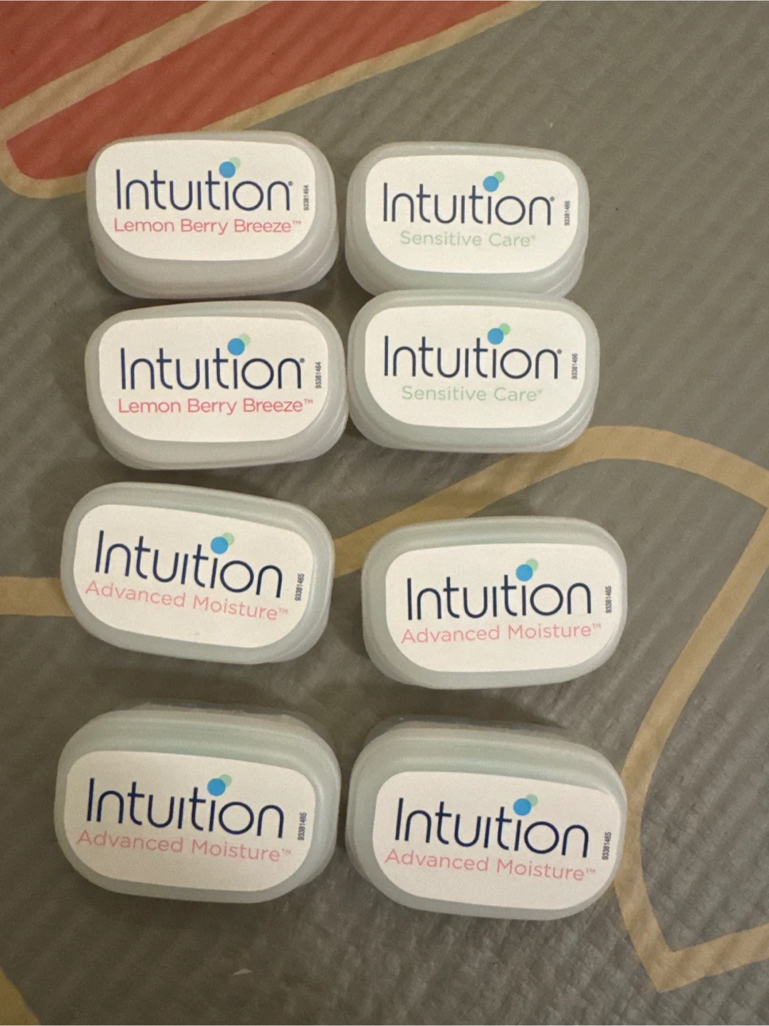 A set of eight Intuition razor cartridges. Includes two Lemon Berry Breeze, two Sensitive Care, and four Advanced Moisture cartridges. These are designed to fit Intuition razors.