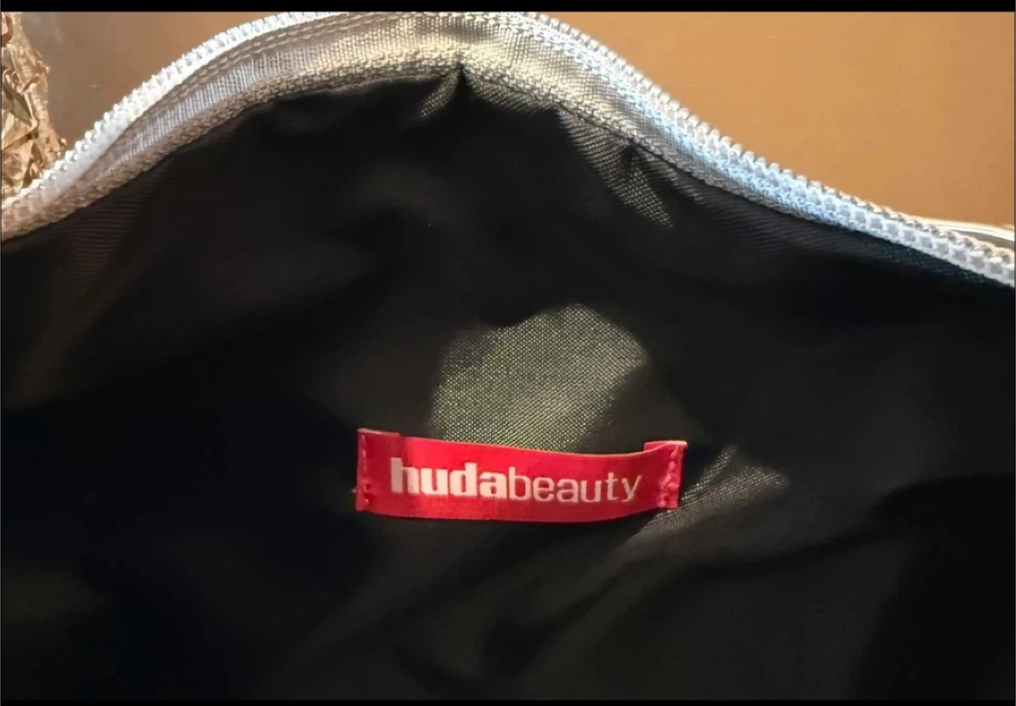 Interior: Fully lined in black fabric with the authentic red Huda Beauty woven label.