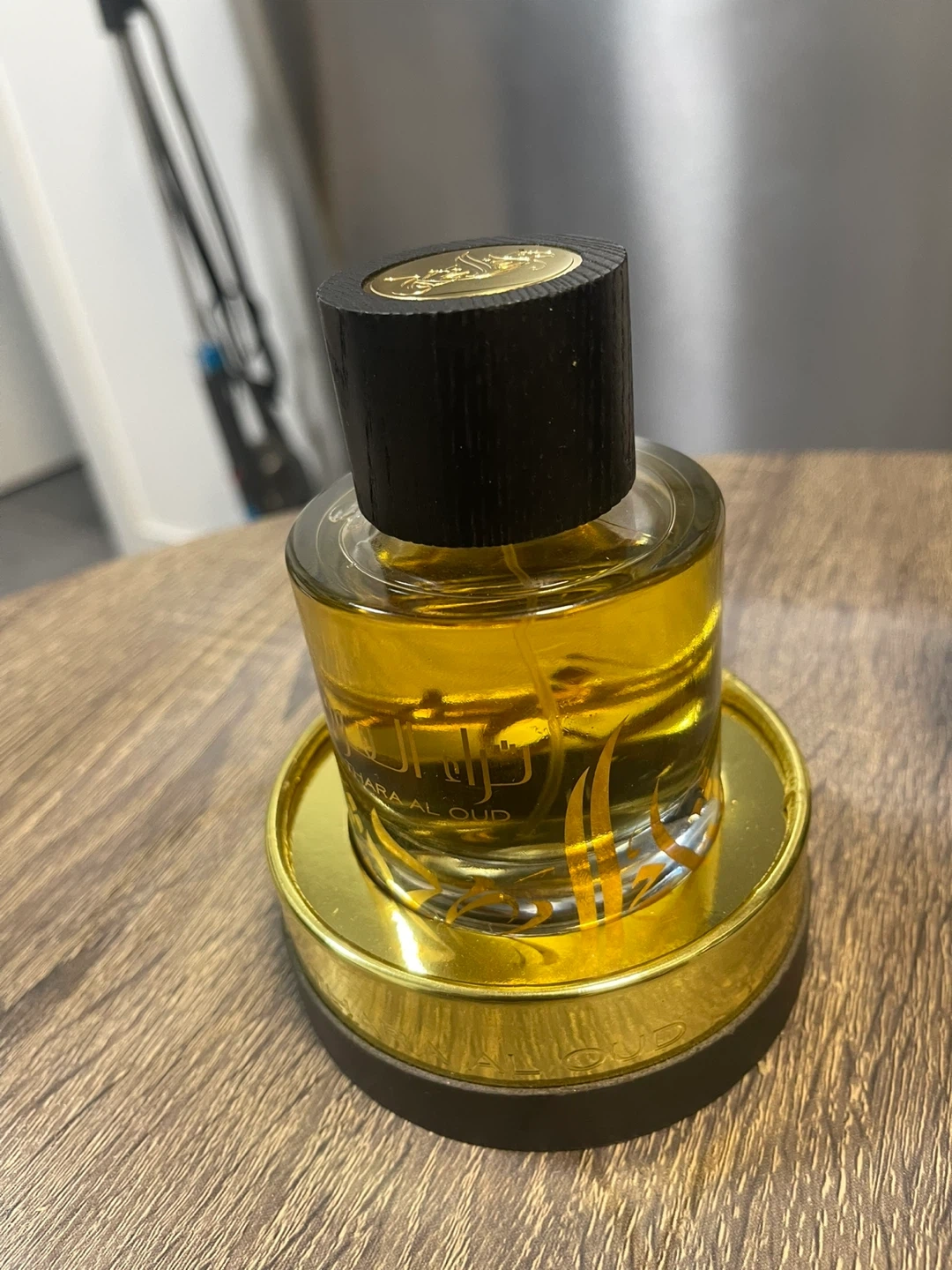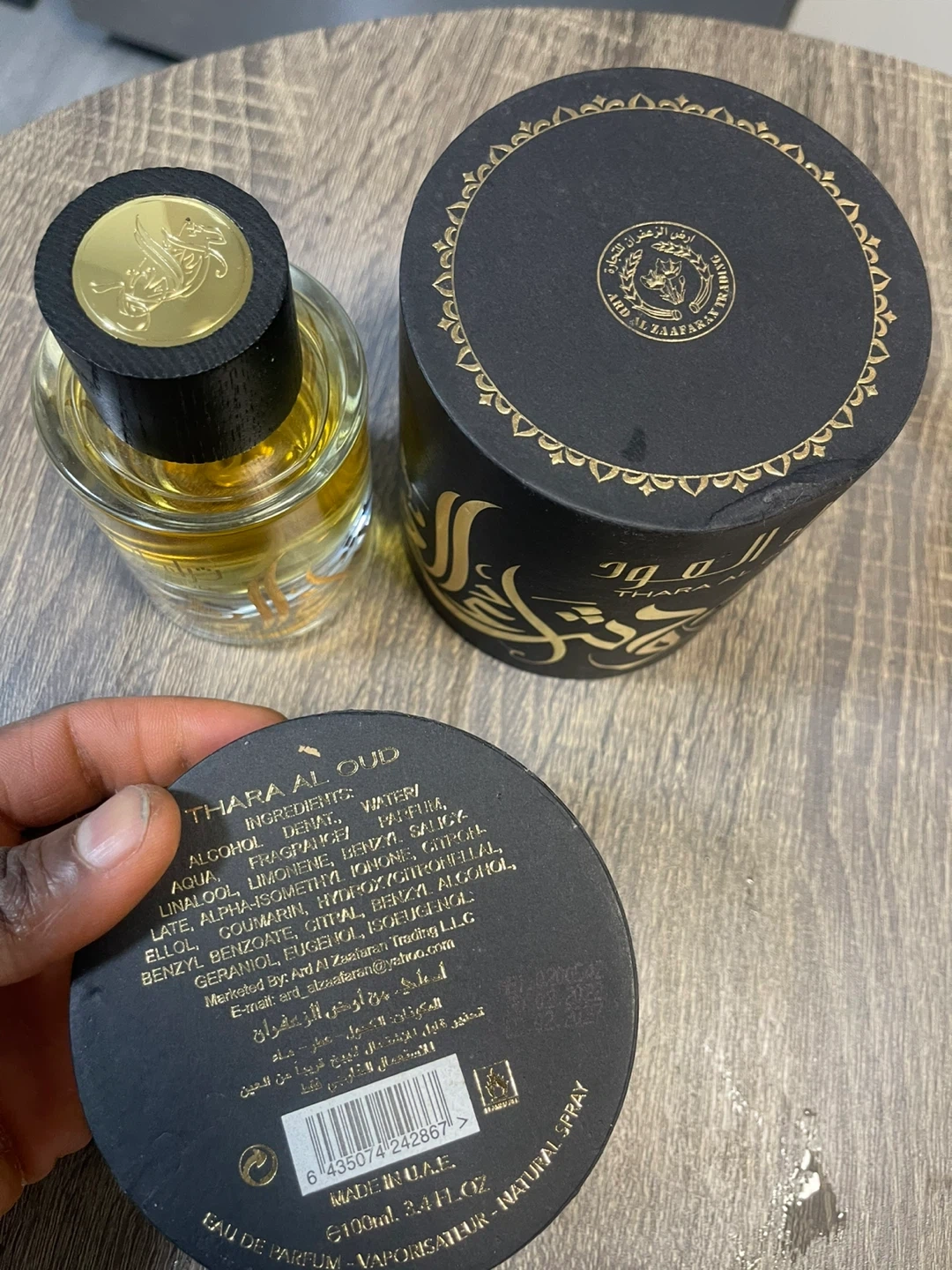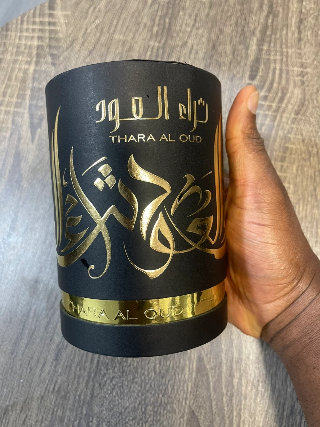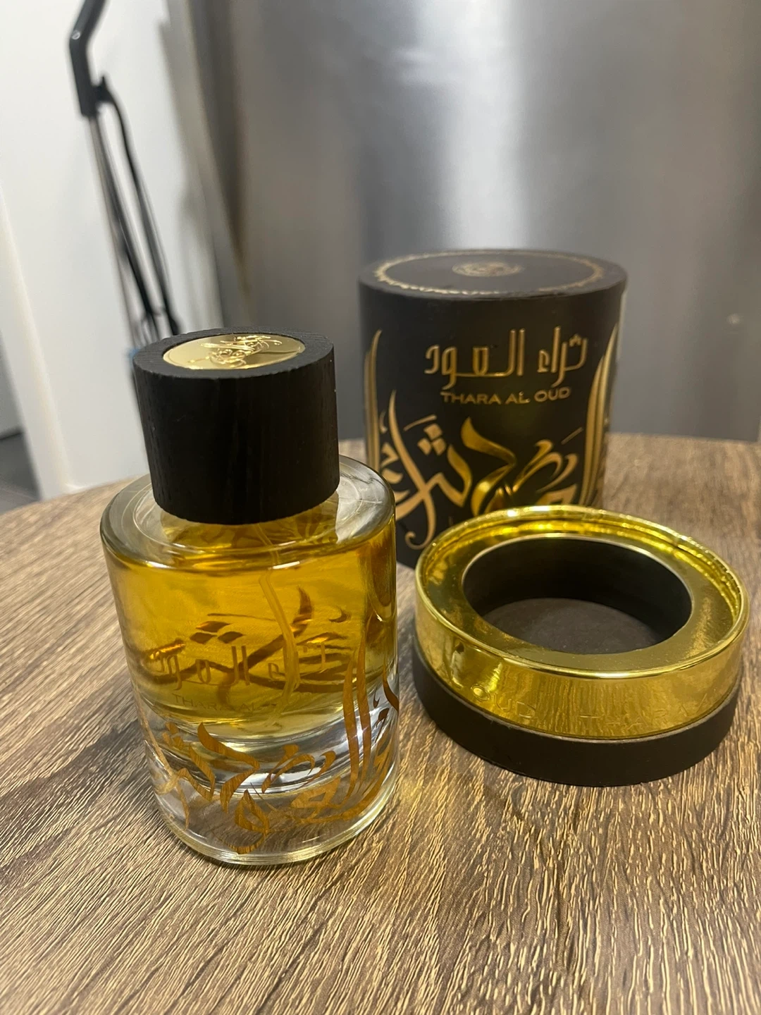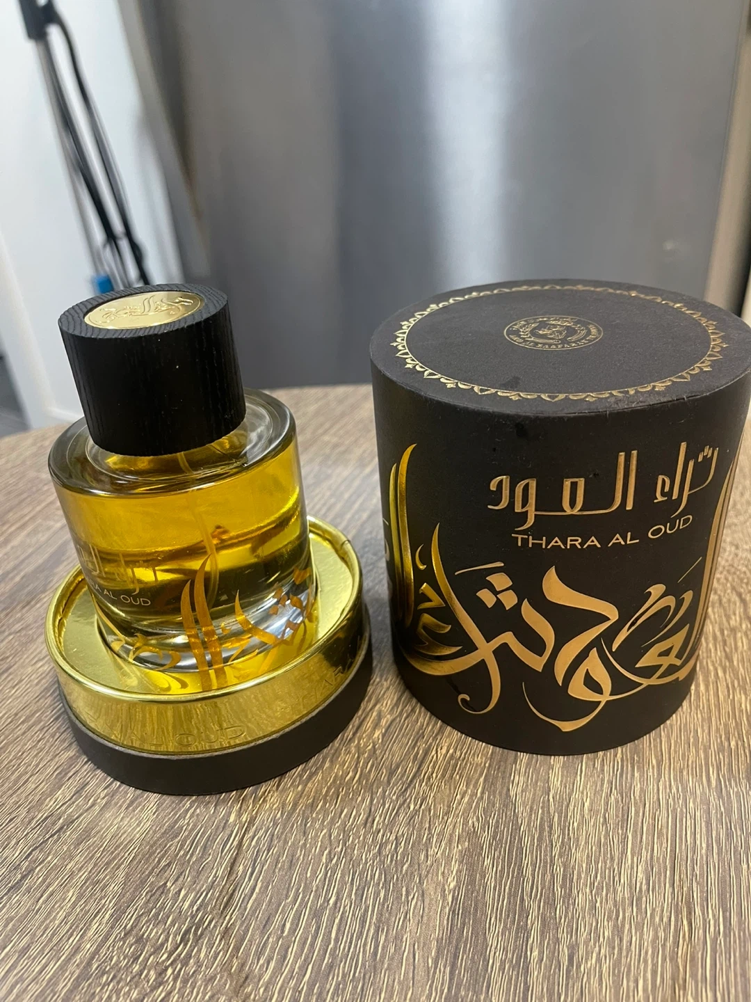 This is Thara Al Oud Eau de Parfum, a captivating scent presented in a 100ml bottle. It's an eau de parfum for men and women, offering a rich fragrance experience. The bottle comes with its original packaging. Got from my last trip to Dubai. Brand new, 100% full.