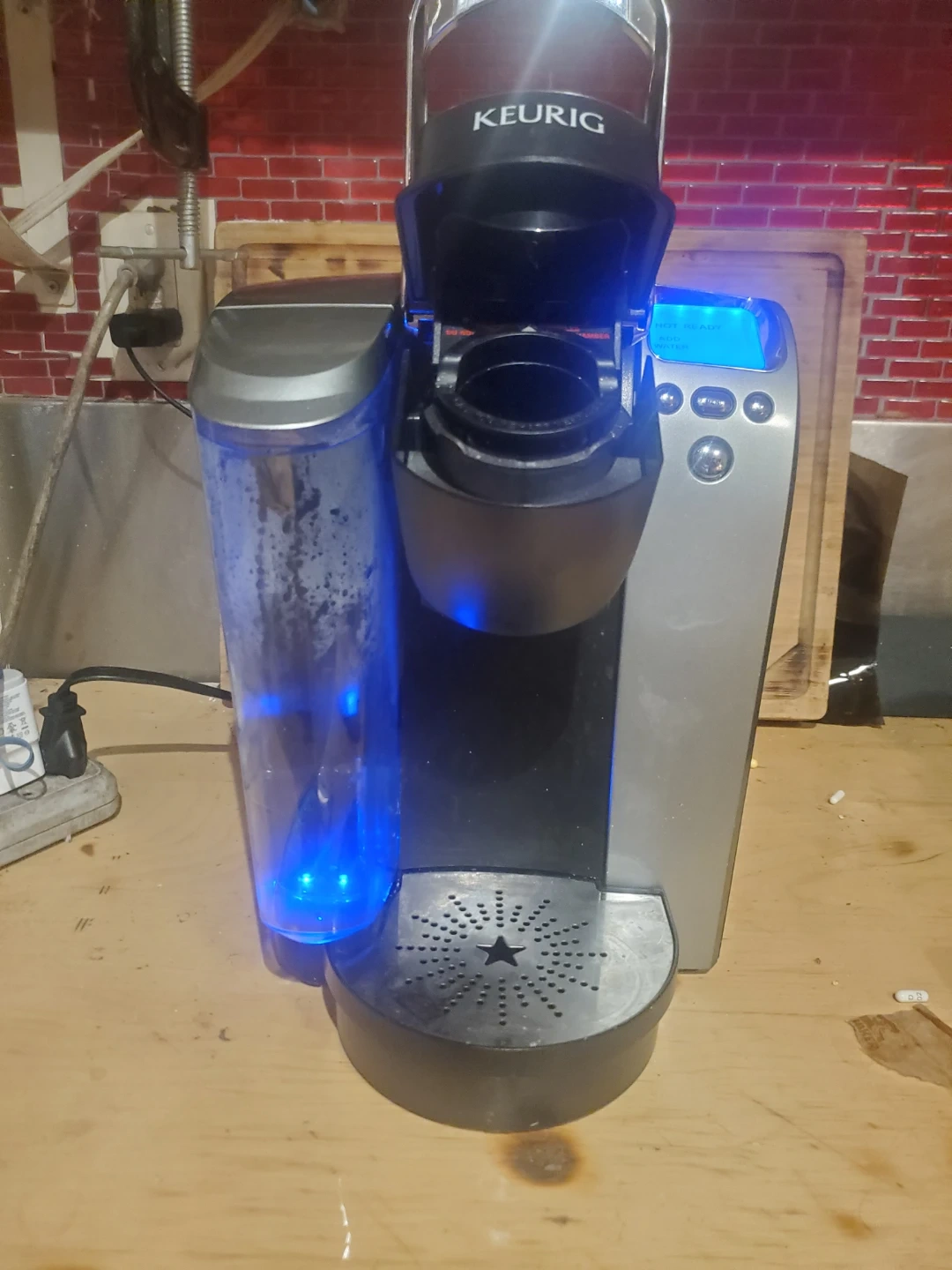 It's a Keurig single-serve coffee maker with a removable water reservoir. Brews your favourite coffees and teas quickly. Comes with one K-Cup coffee pod.