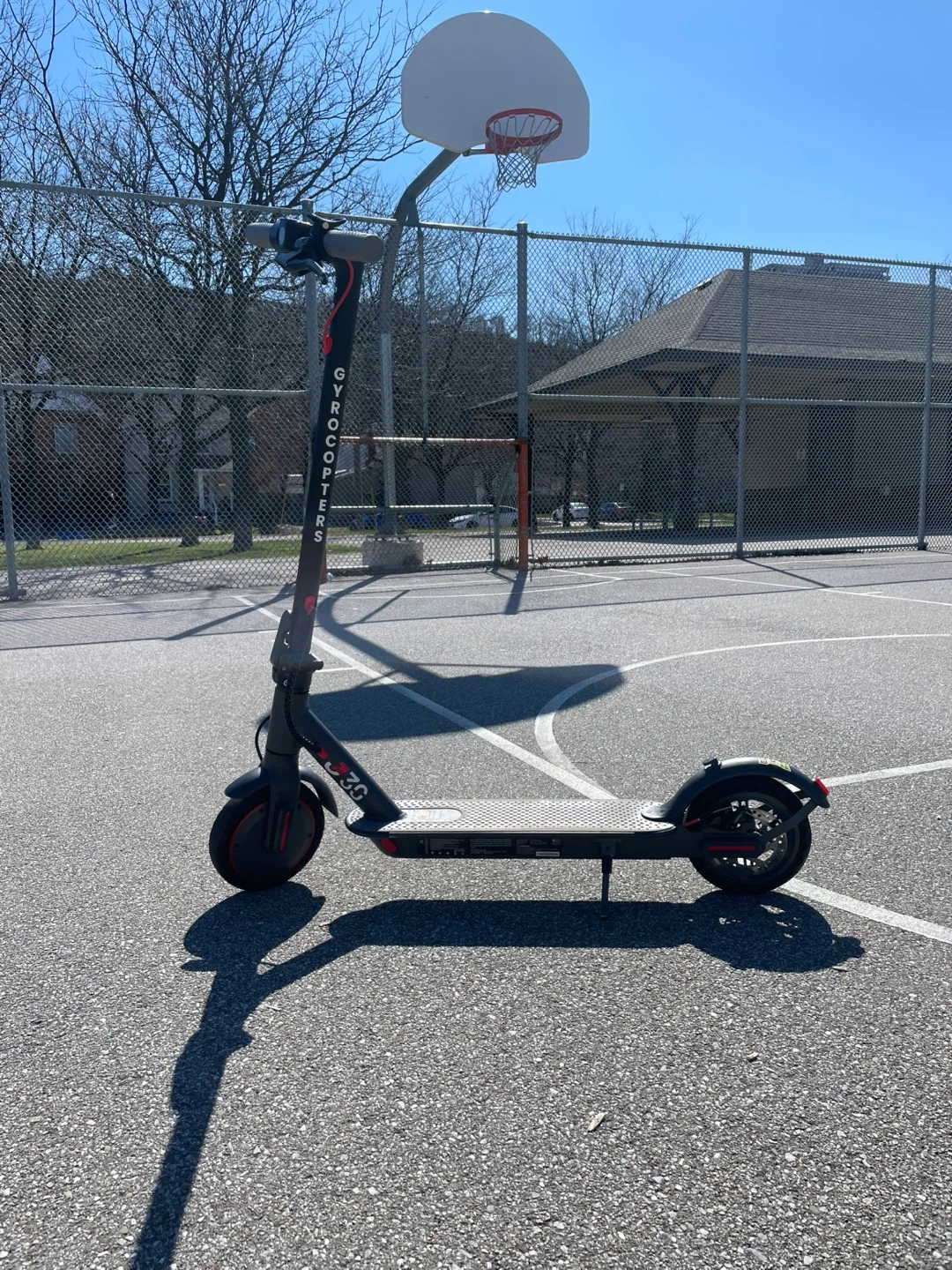 This is a black GyroScooters electric scooter. It's a fun way to get around town. Great for commutes or just enjoying the outdoors!