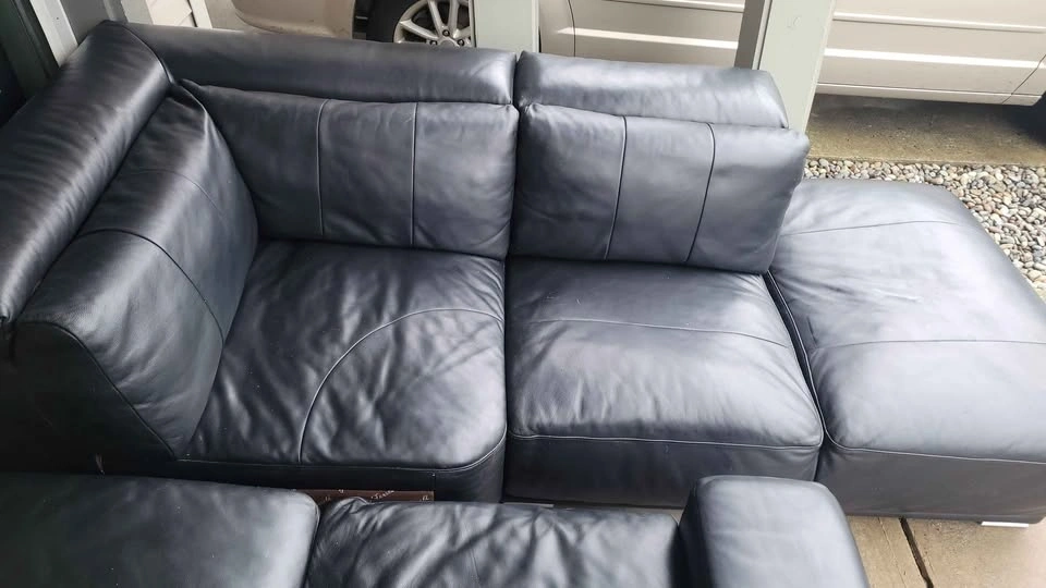 Selling a LARGE Black Top Grain Leather 3pc. Sectional Sofa in great used condition. (FARRELL Brand)