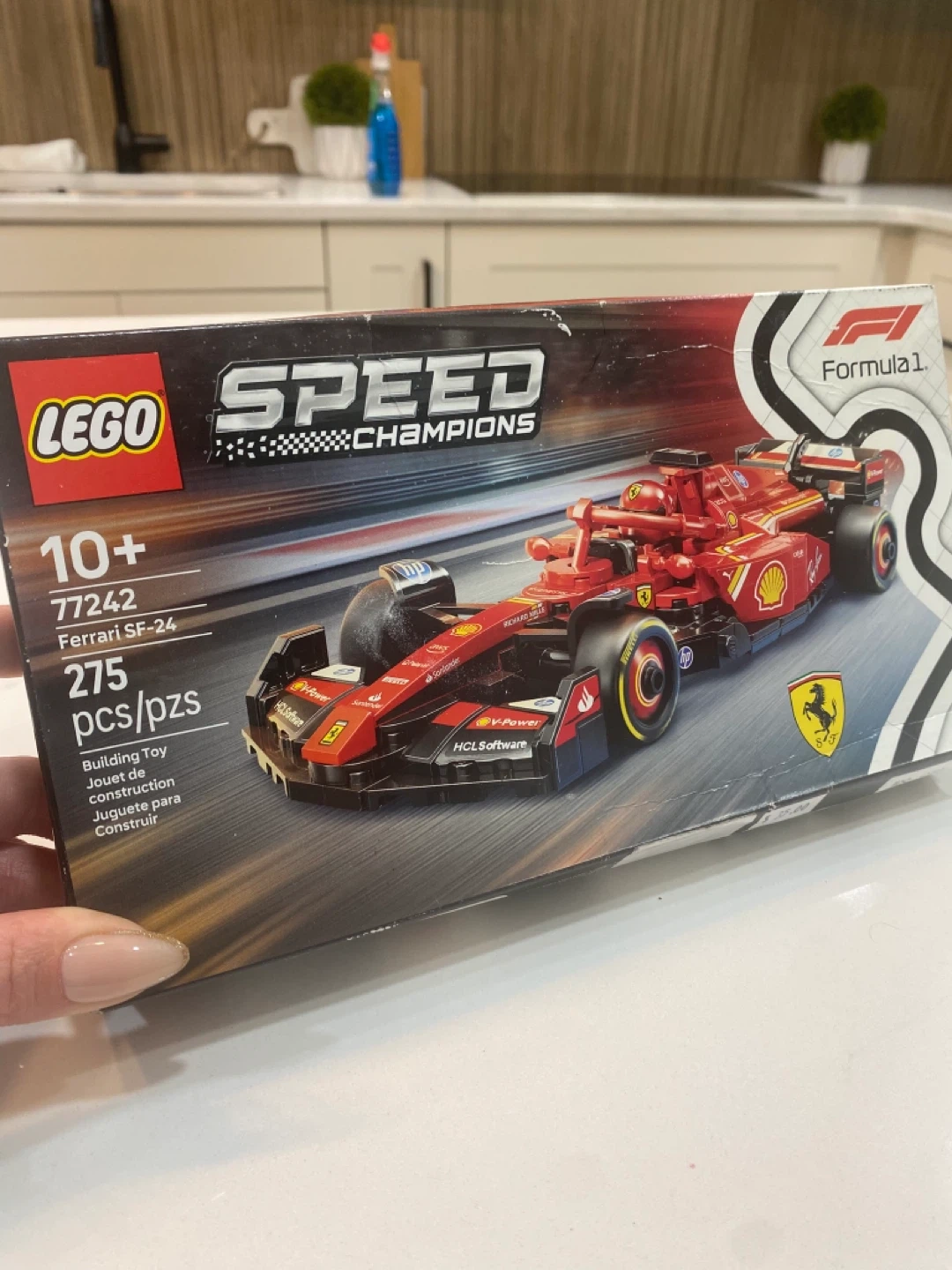 Selling a LEGO Speed Champions Ferrari SF-24. It's a 275-piece building toy for ages 10+. It’s brand new still in the box!