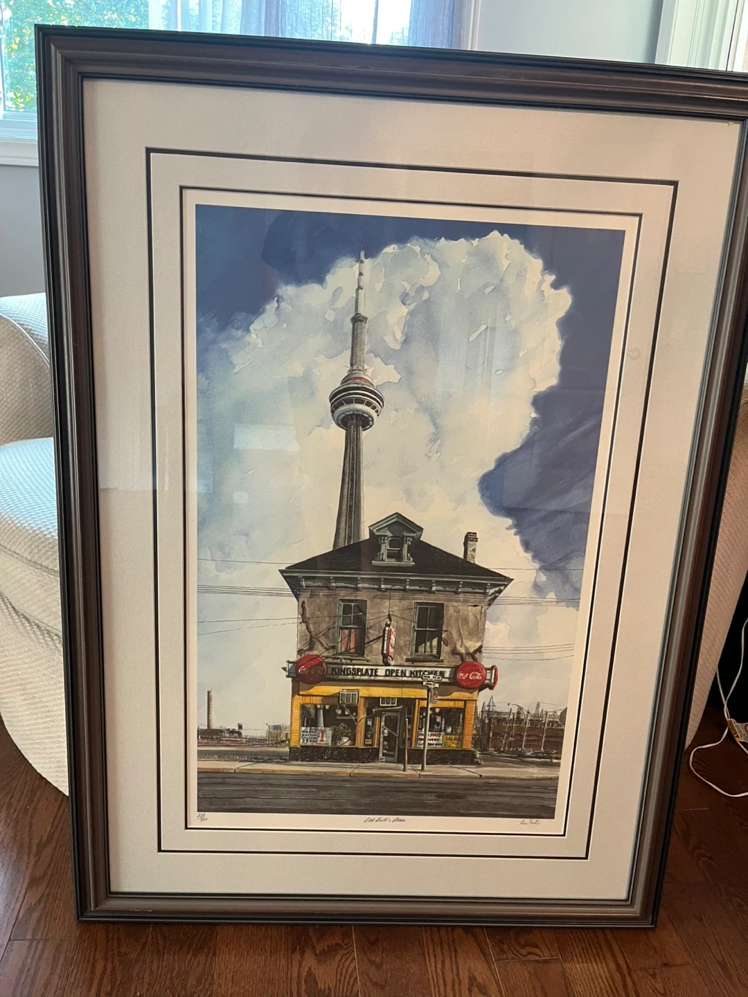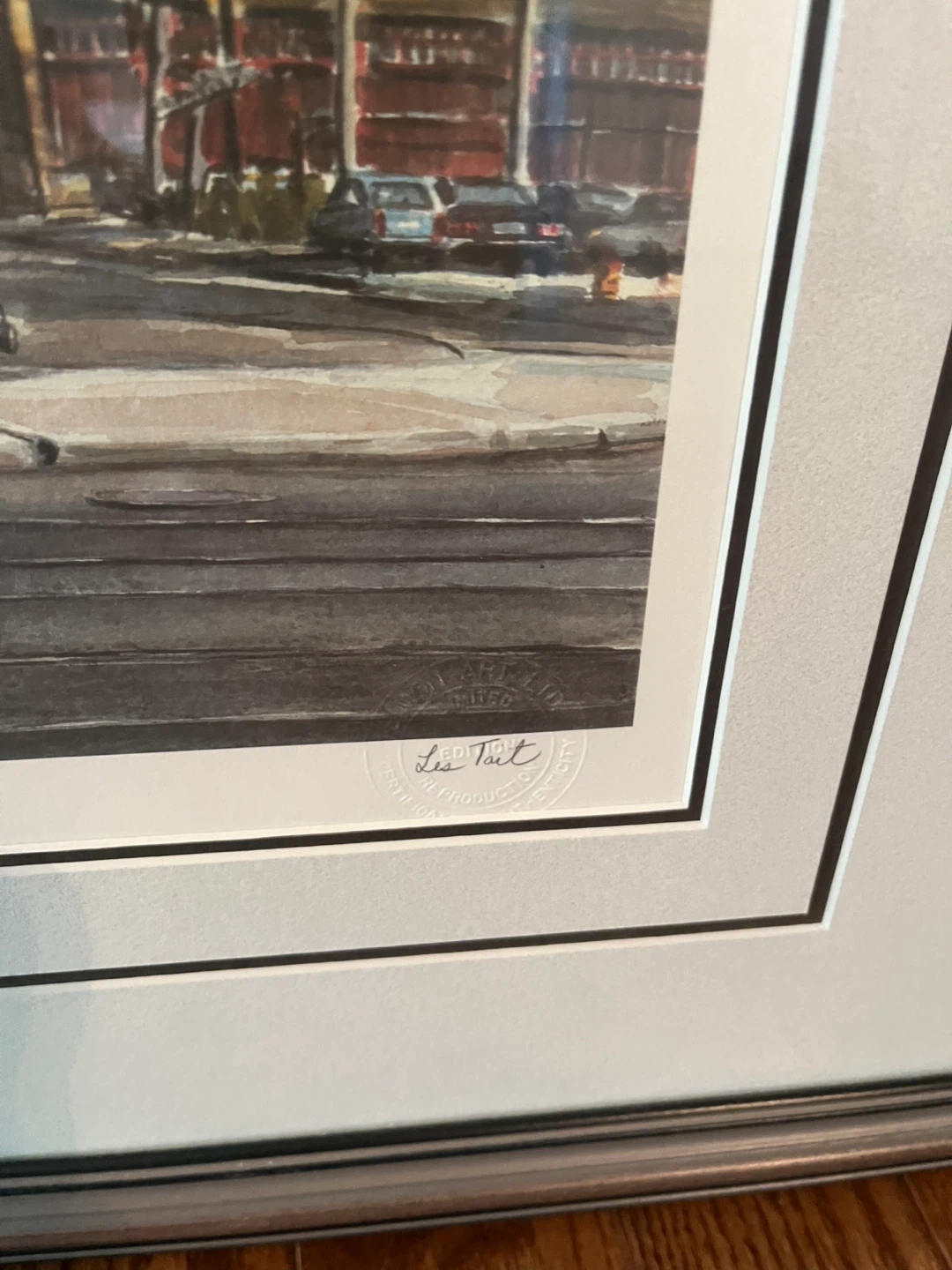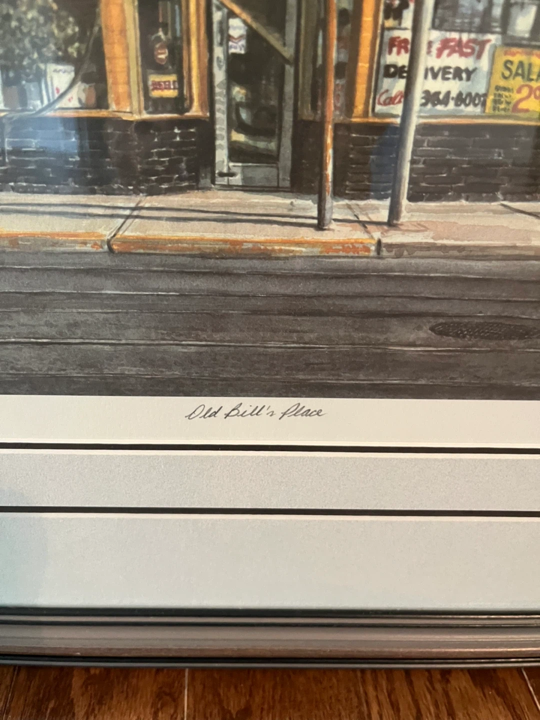 Selling a framed art print by Les Tait, titled 'Old Bill's Place'. It's a charming piece that would look great in any home. The print is in excellent condition and professionally framed. Old Bills Place is now a sold out piece cannot be found unless resale