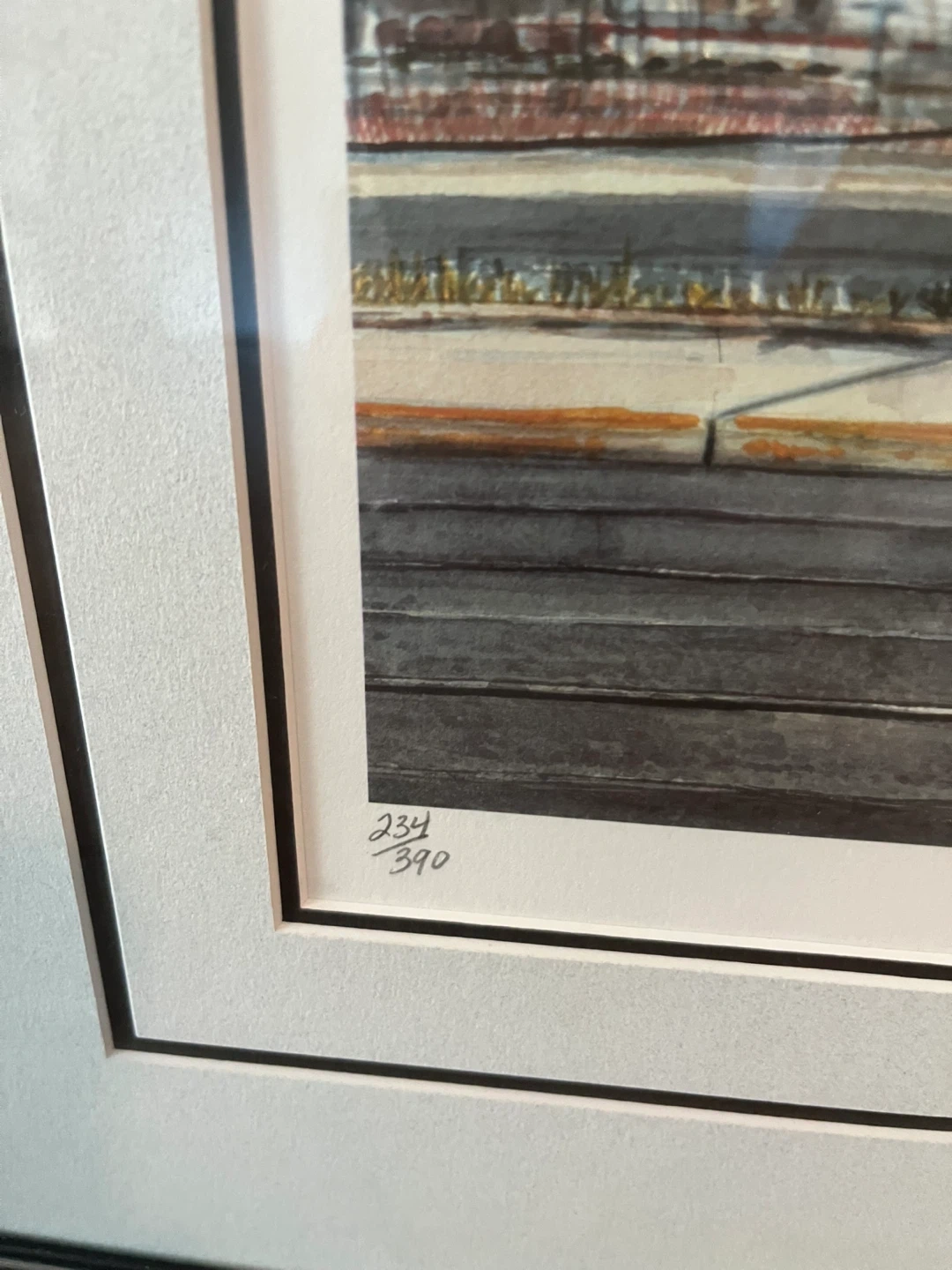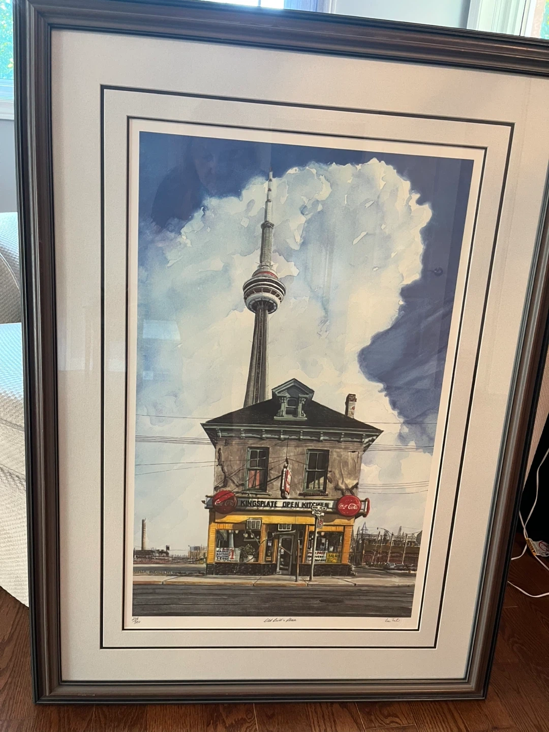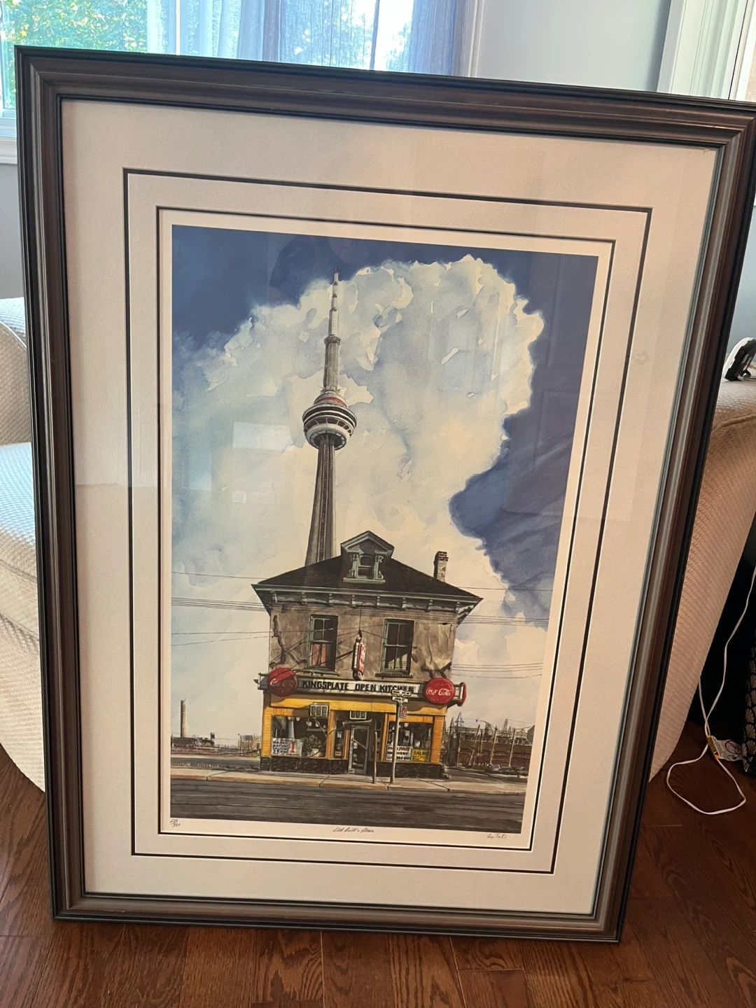 Selling a framed art print by Les Tait, titled 'Old Bill's Place'. It's a charming piece that would look great in any home. The print is in excellent condition and professionally framed. Old Bills Place is now a sold out piece cannot be found unless resale