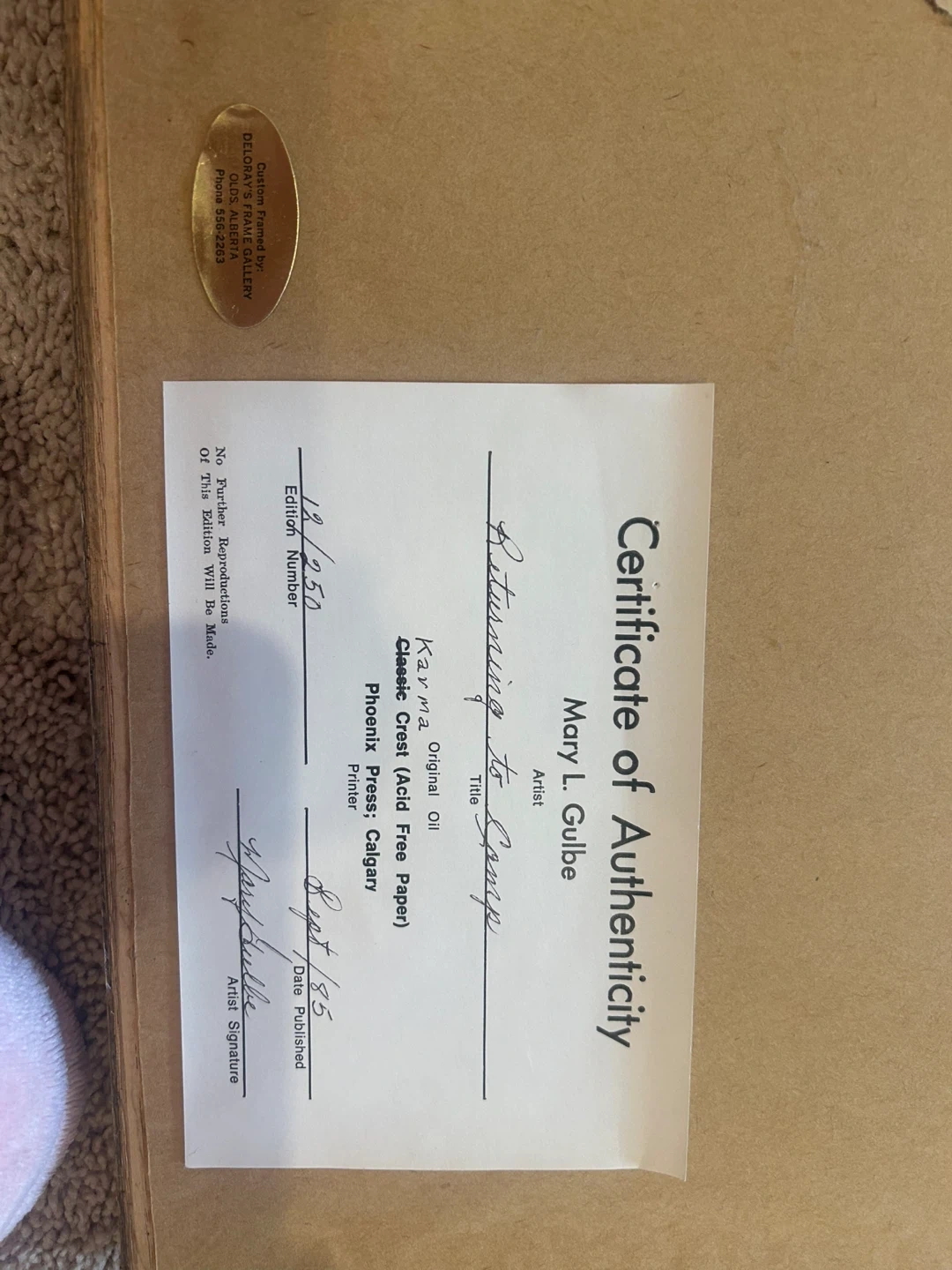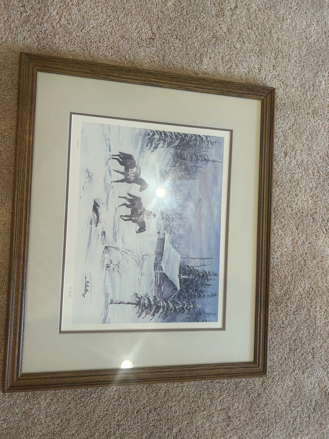 65Selling a framed art print titled "Returning To Camp" by artist Mary L. Gulbe. This piece is a classic crest (acid-free paper) and is edition number 12/250. Date Published August 7, 1985