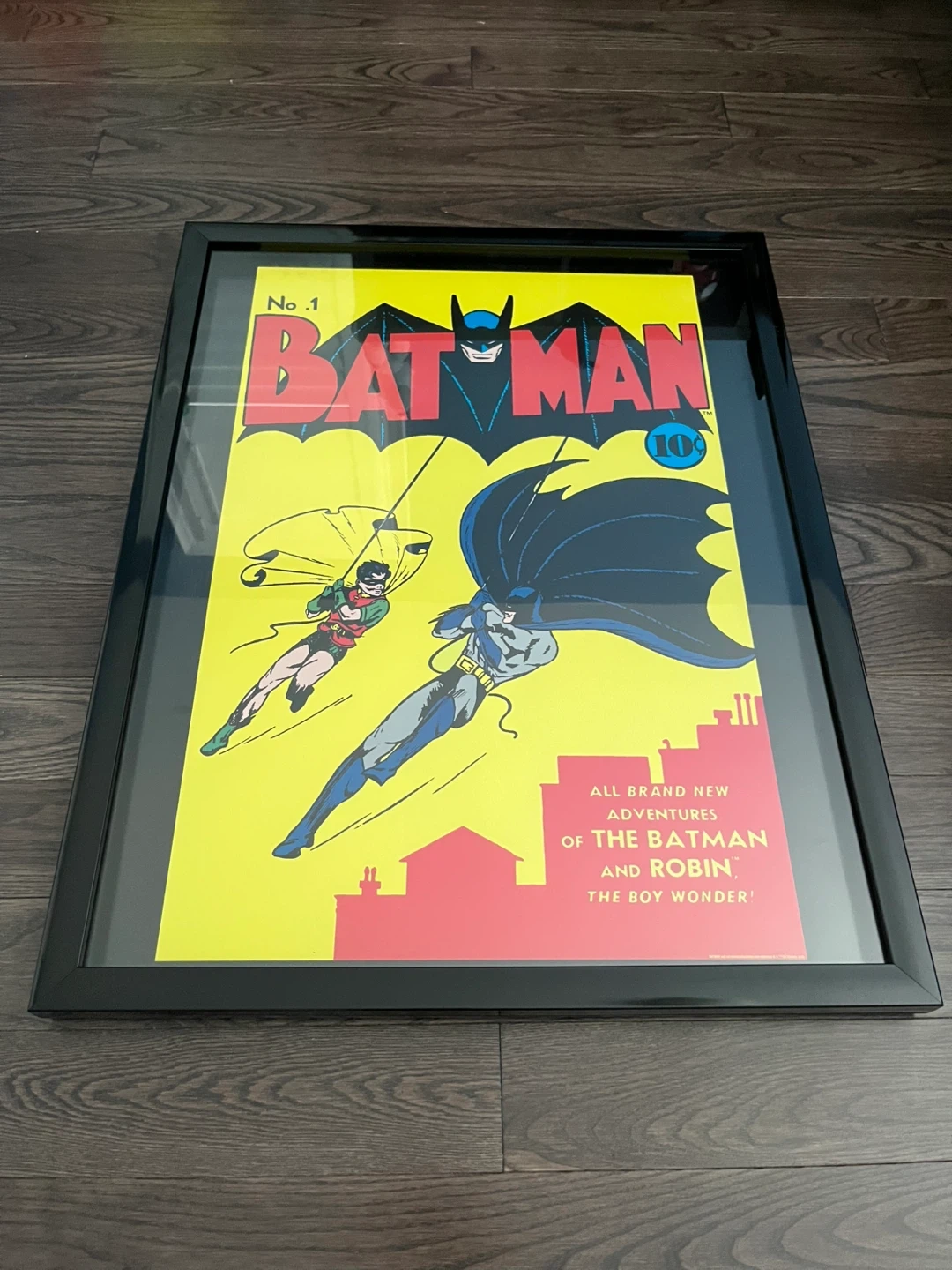 Reproduction poster of original first issue of Batman Comic (All Brand New Adventures of The Batman and Robin, the Boy Wonder) Professionally framed Glass shadowbox style Artissimo Sports and Entertainment 28” x 22” x 1.25” Pick up: Mayfield and Kennedy