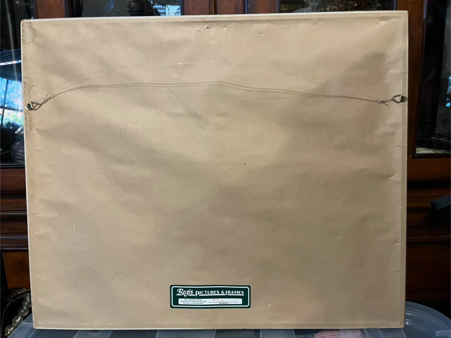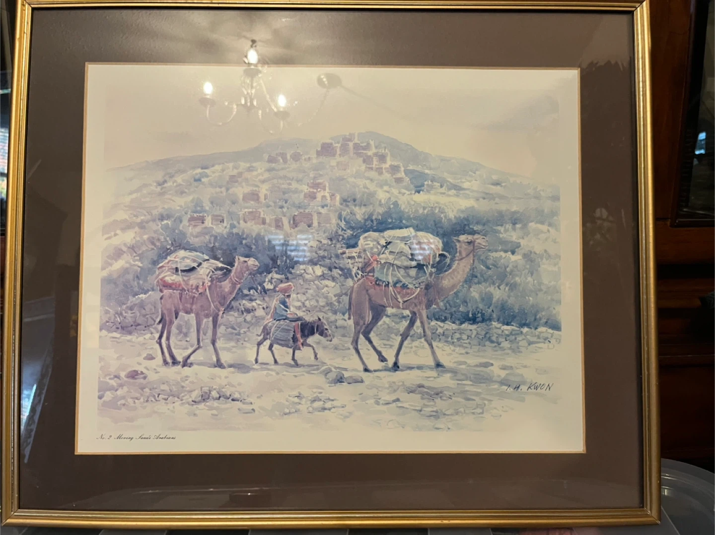 331Selling a framed print by I.H. Khan. It depicts a desert scene with camels and a small village in the background. The frame is gold-toned and in good condition. It would be a lovely addition to any room. See another framed picture by this artist in my postings. Non smoking, pet friendly South Burnaby home. Check out my other listings!