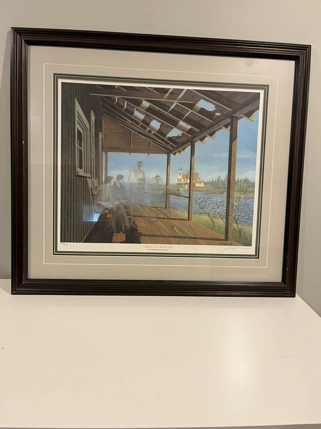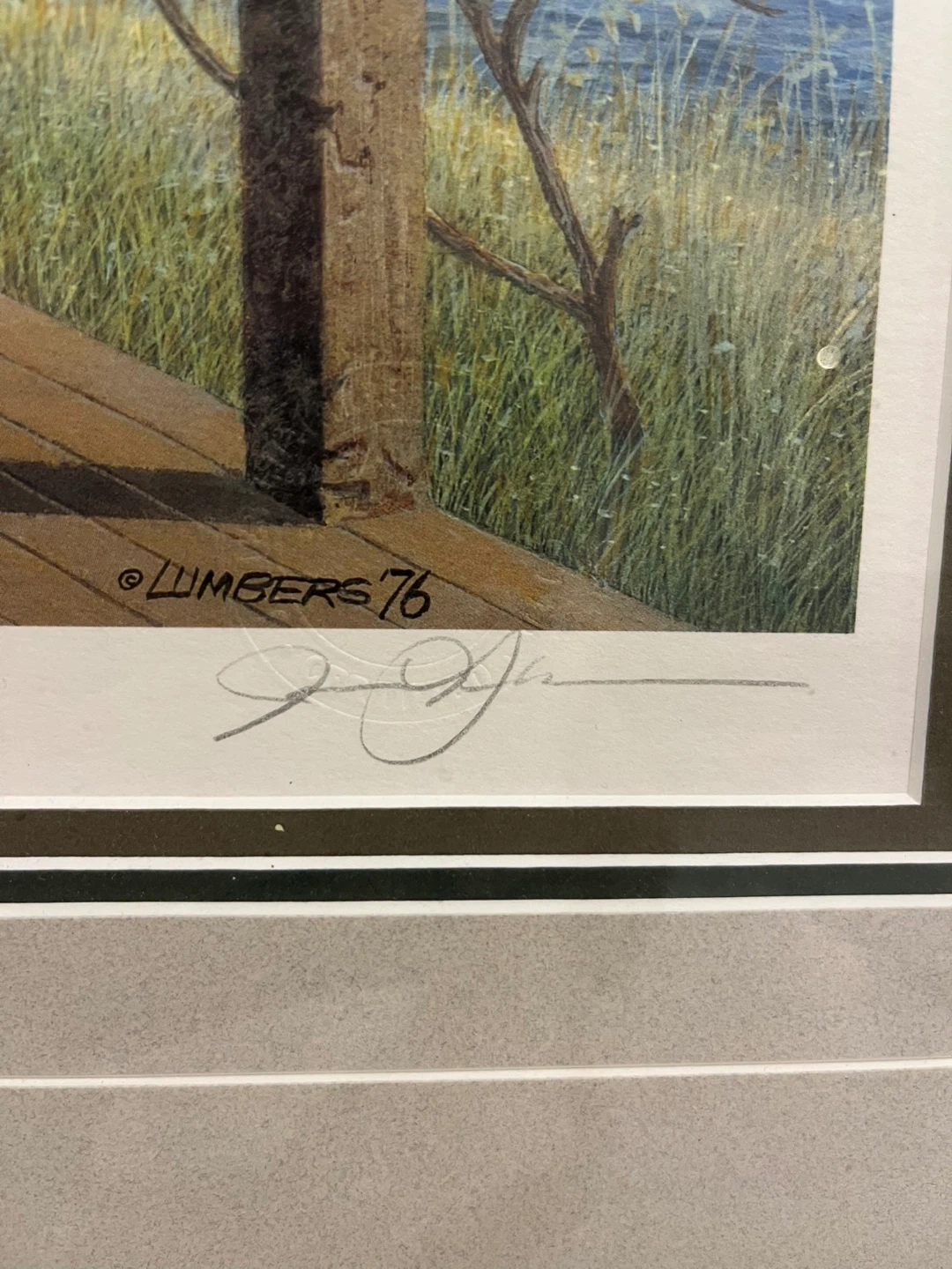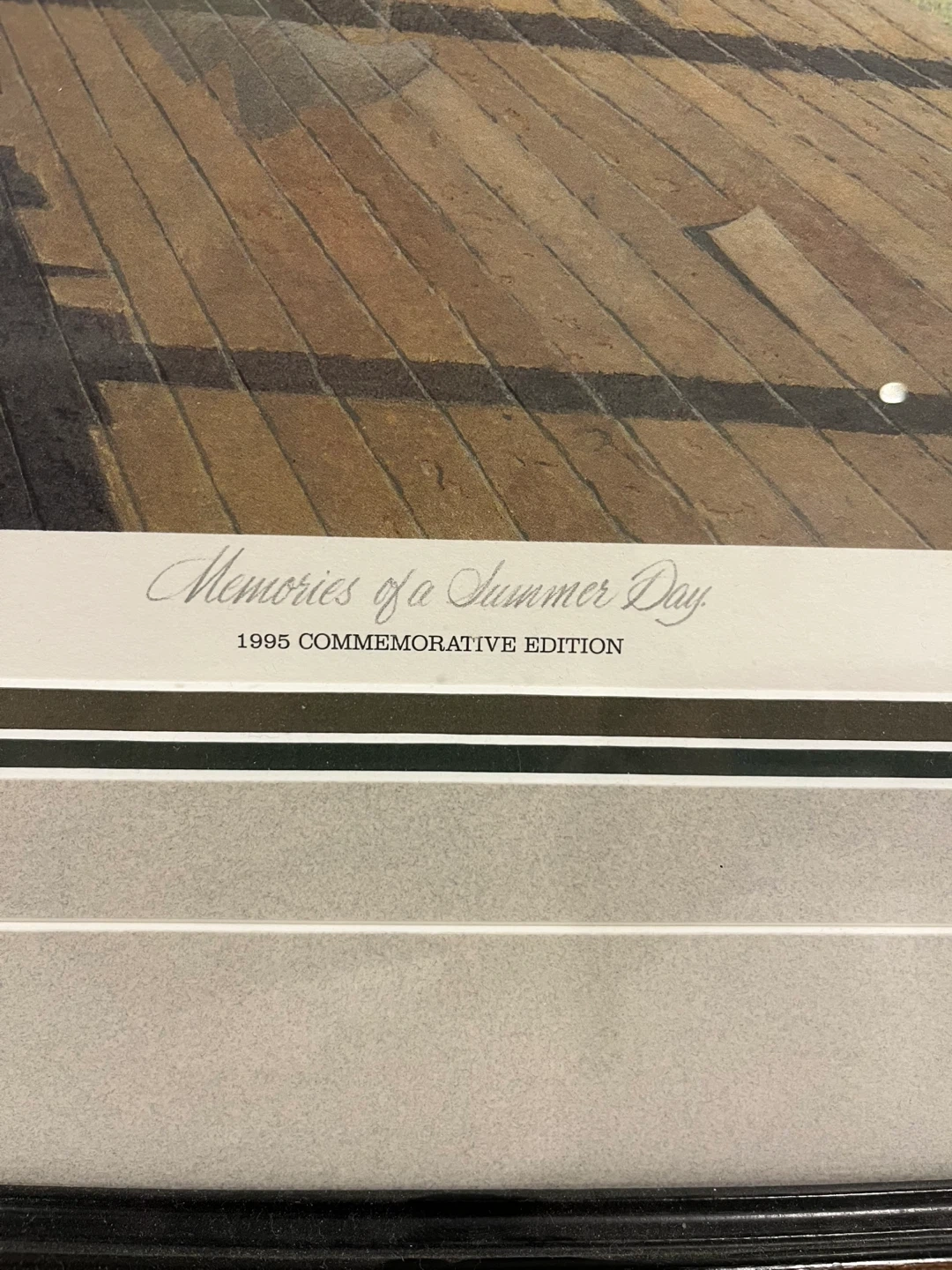 Group of 7 James Lumbers Framed print titled 'Memories of a Summer Day'. It's a 1995 commemorative edition, numbered 871/3500. The artist's signature is also visible.