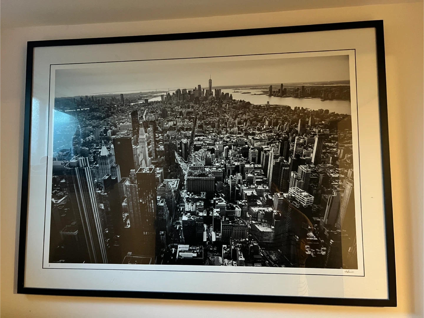 10$300 OBO *Delivery Available* Custom framed and matted black and white photograph of New York City skyline, view from the Empire State Building. Signed by artist, original / only copy (print 1/1). Incredible detail. Size of print: 36" x 24" Size with frame: 44" x 32" Modern matte black wood frame (3/4" wide), white double matting, studio glass, ready to hang. Perfect condition, no damage or imperfections.