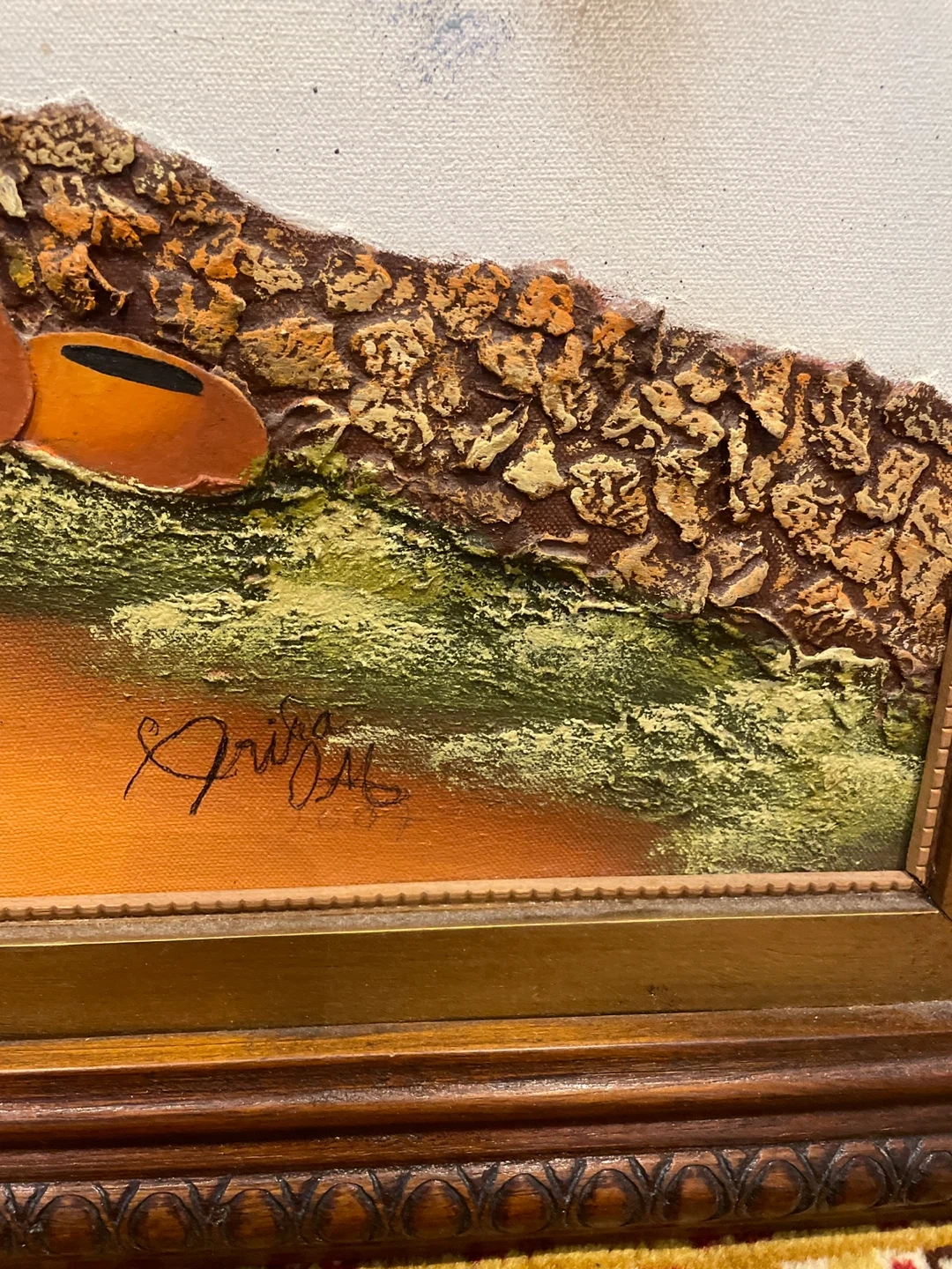 Beautiful framed oil painting of village. 106cm x 77cm (42" x 30.5")