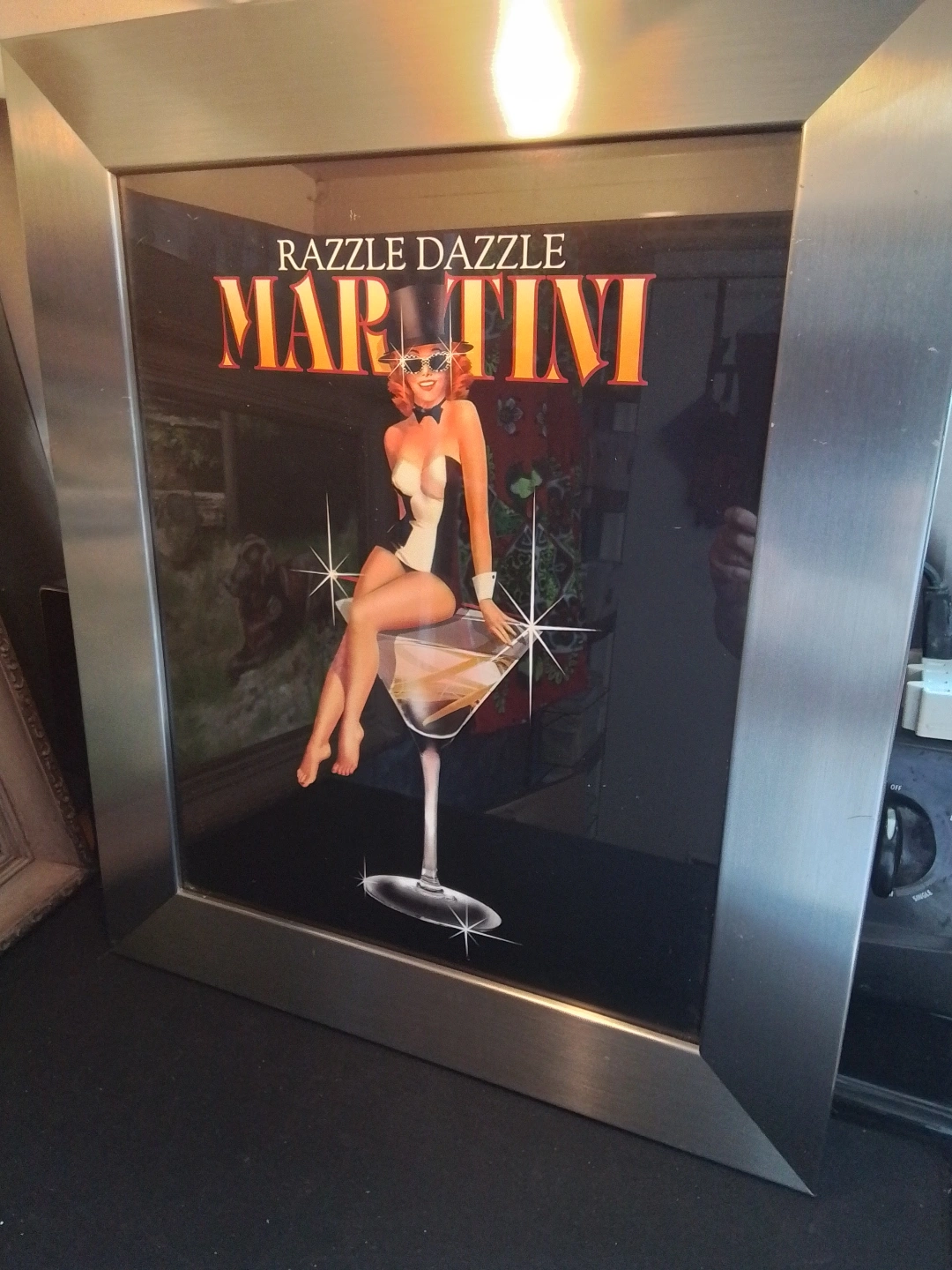 Framed Razzle Dazzle Martini Print Martini Framed Art Print Add a touch of retro glam to your space with this eye-catching Martini framed art print! This piece is in good condition and ready to hang. It features a fun and flirty design that's sure to spark conversation and bring a bit of vintage charm to any room. MCM Style. Razzle Dazzle Martini Poster PrintFramed. Frame seems to be stainless. Large Size. Sexy Pinup Girl. Condition: Good Measurements: 26" x 21.5" If the ad is up, it's available! Don't miss out on this chance to own a unique piece of art. It's so fabulous, you might just need a designated martini sipper to admire it with you! Framed print featuring a pin-up girl sitting on a martini glass. Silver frame. Perfect for a bar or man cave. Pickup at Young Street and Steels Ave