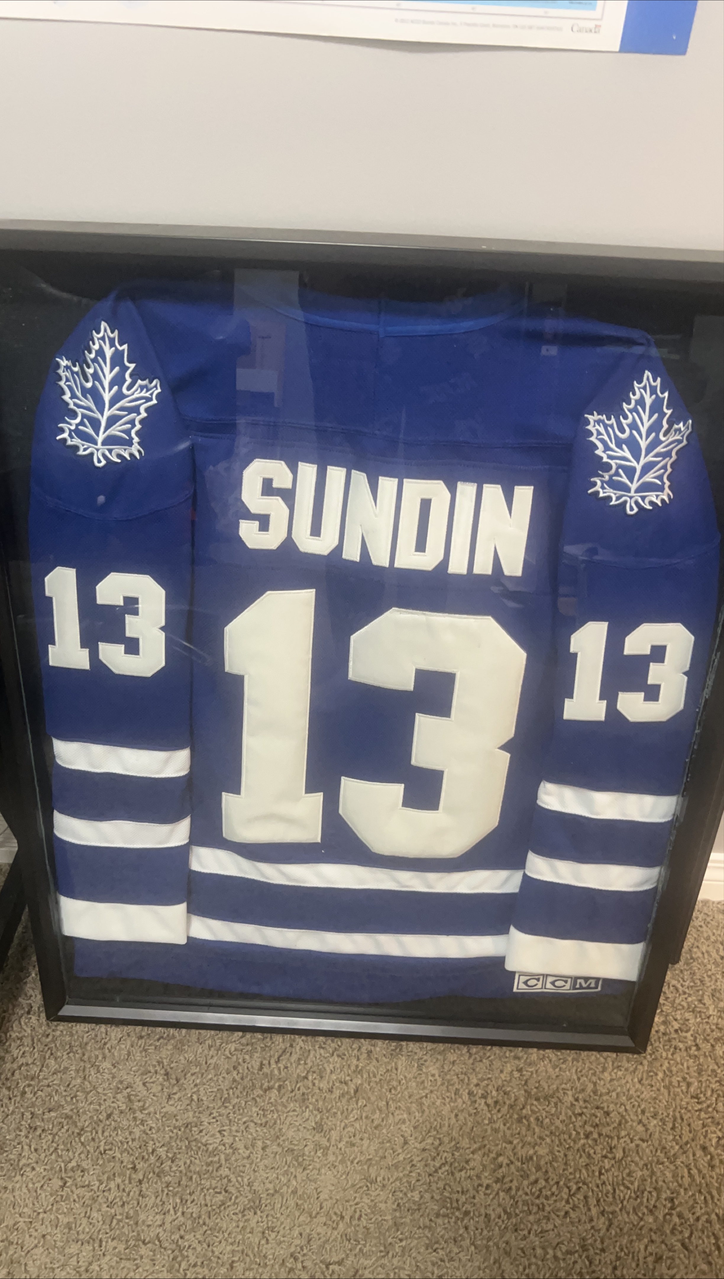 Selling a framed Toronto Maple Leafs jersey featuring the legendary Mats Sundin, number 13! It's in great condition and would be perfect for any Leafs fan looking to add a special piece to their collection