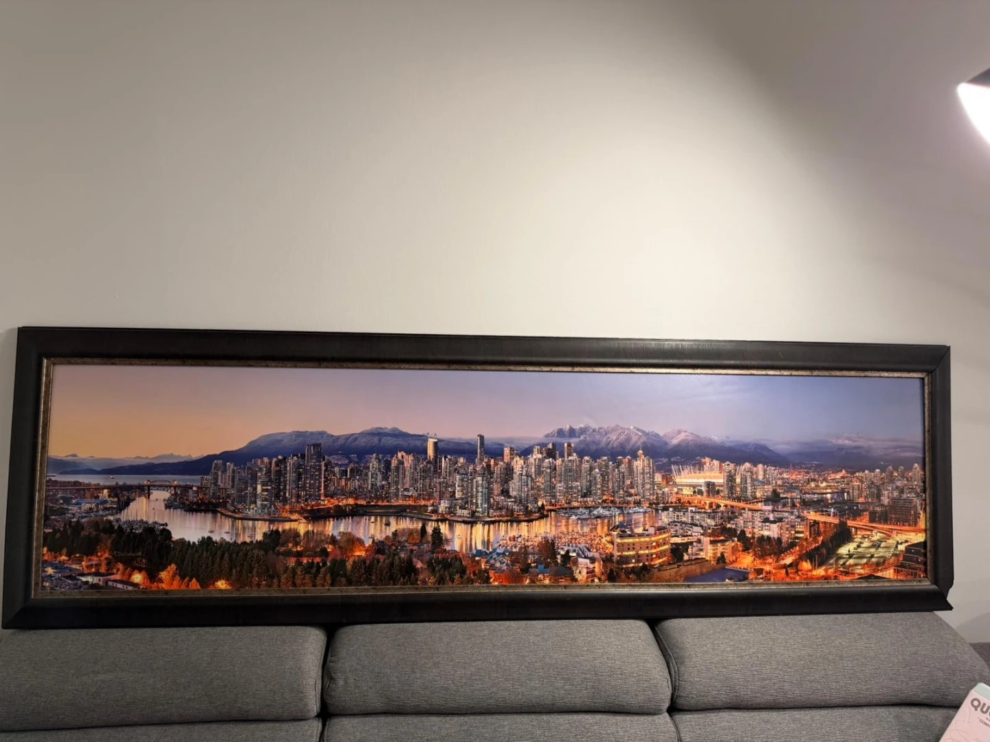 102Selling a framed panoramic print of the Vancouver skyline. It's a beautiful piece that captures the city lights and surrounding mountains. The frame is a dark colour and the print is in great condition. Perfect for adding a touch of Vancouver to your home or office!
