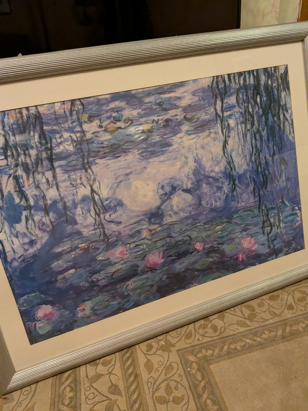 168Selling a framed print of Monet's Water Lilies. It's a beautiful piece and would look great in any home! From the 1980's era Good condition with faint scratches on frame. The back has seen better days, but can't see it! About 4ft x 3ft Cash only, No etransfers Location: Etobicoke. Rathburn Rd and Renforth dr. Etobicoke Olympium nearby. 5 mins from Pearson Airport