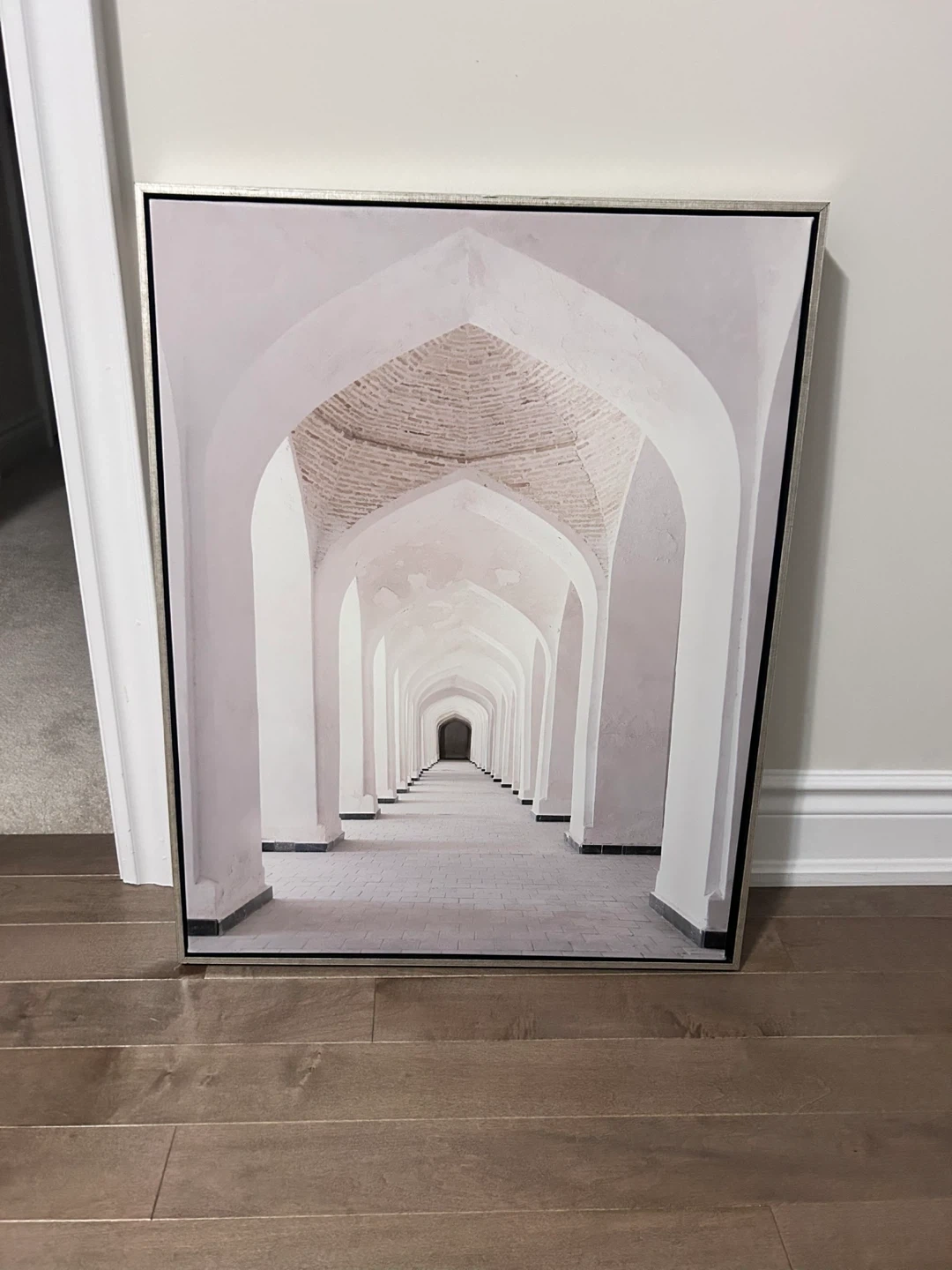 24This is a framed canvas of the interior of the Kalon Mosque in Bukhara, Uzbekistan. 22W x 27.5H x 2D