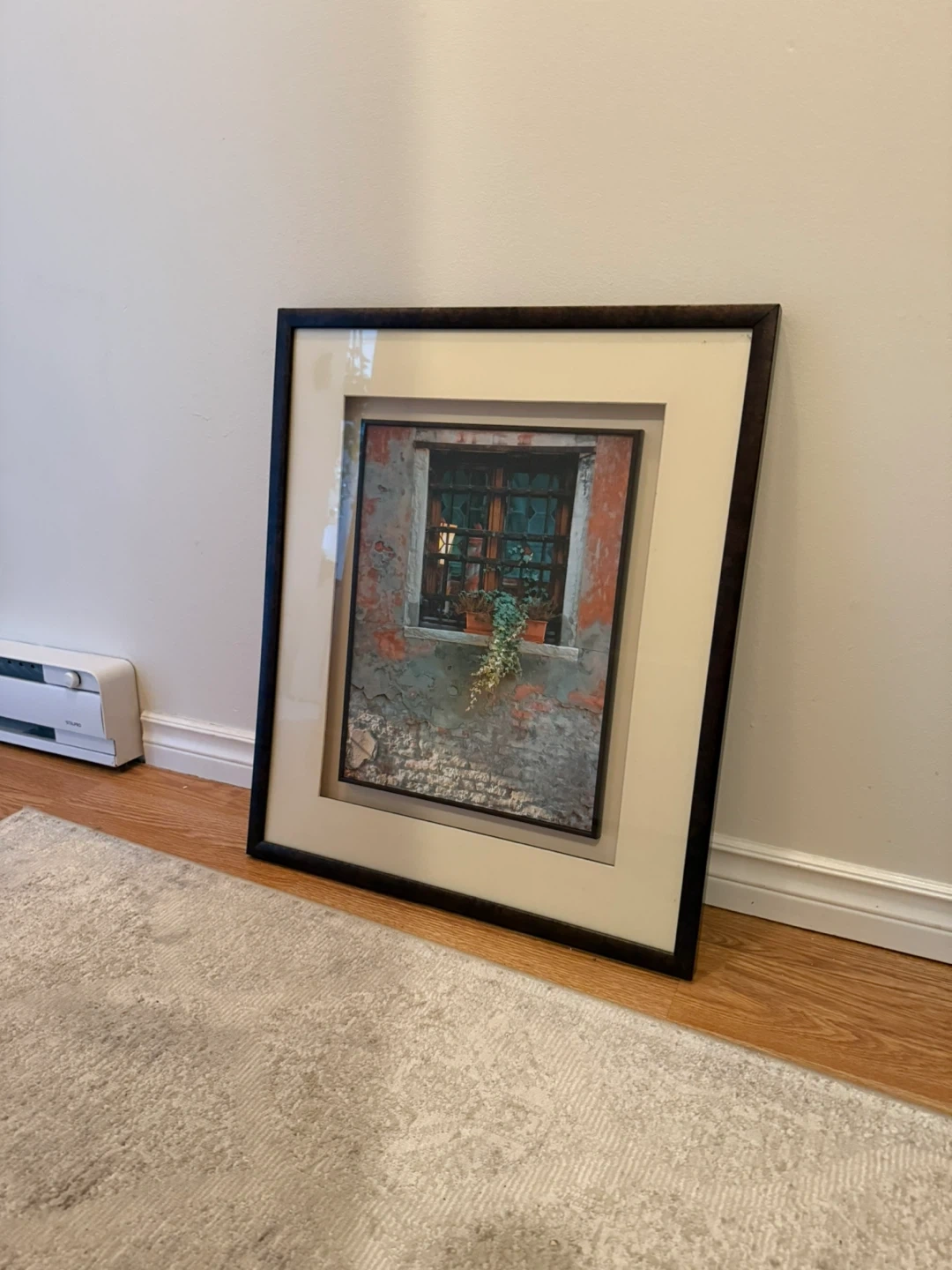 0A lovely framed piece of wall art featuring a window scene. It's in great condition and ready to add a touch of charm to your home