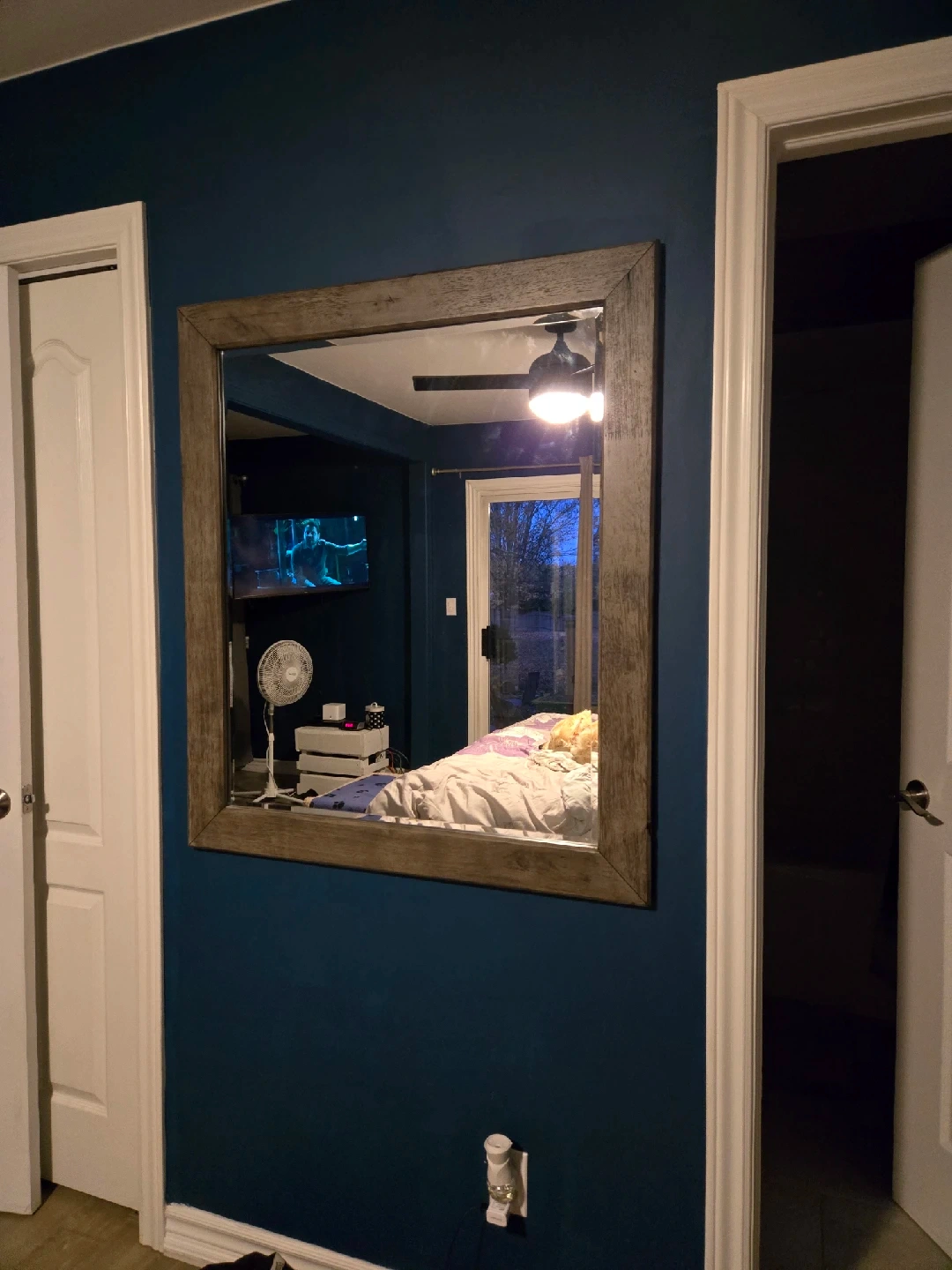10Selling a framed wall mirror. It's in great shape and ready to add some light and space to your home. It has a rustic wood-like frame.