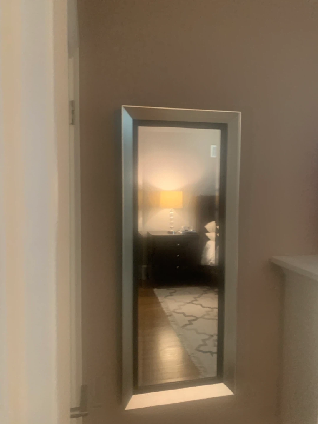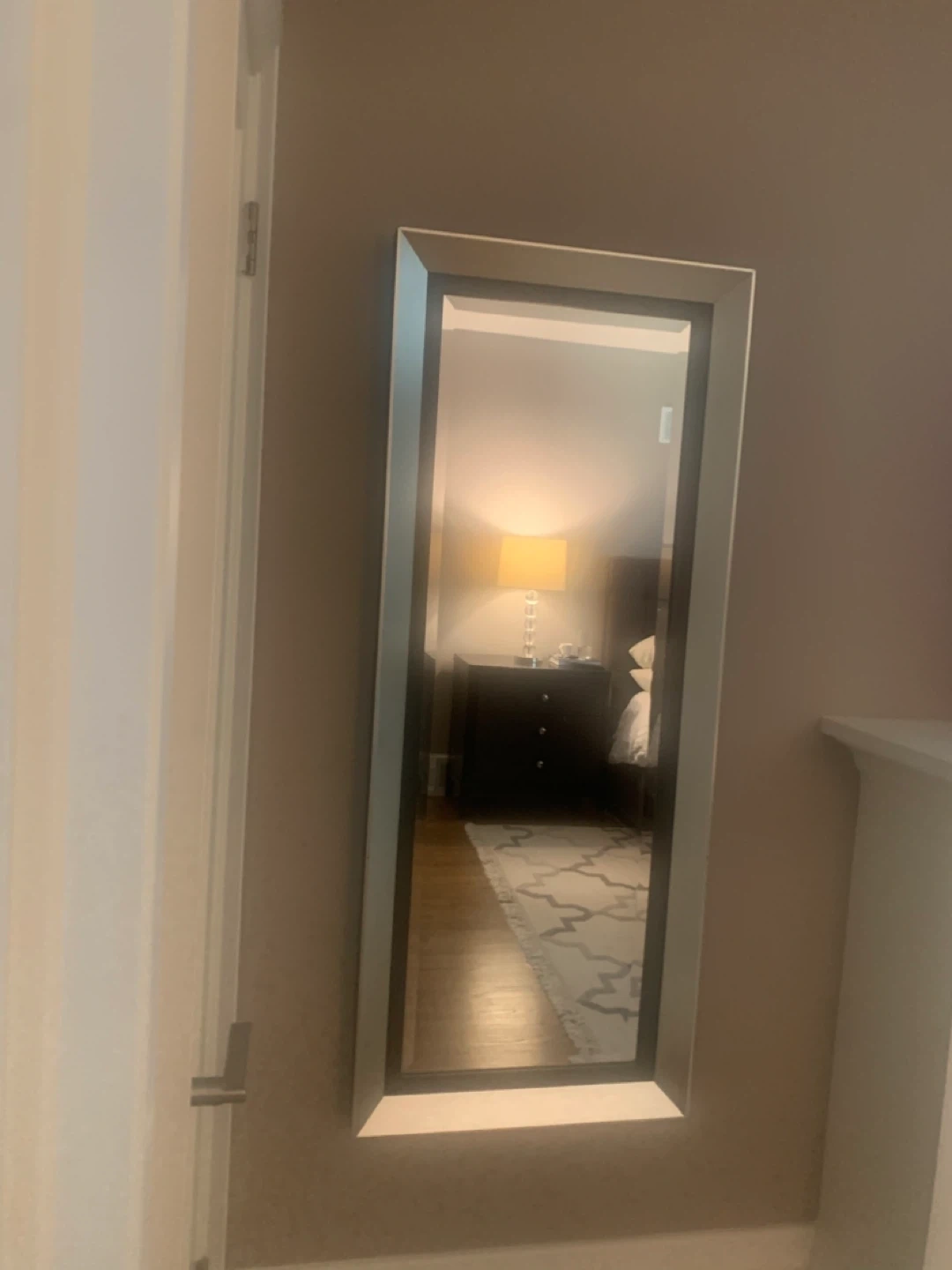 Selling a framed wall mirror. It's in great condition and ready to hang in your home. The frame is a neutral colour that would fit into any space