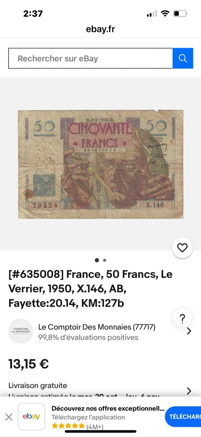 Show allFrance, 50 Francs, Le Verrier, 1950,