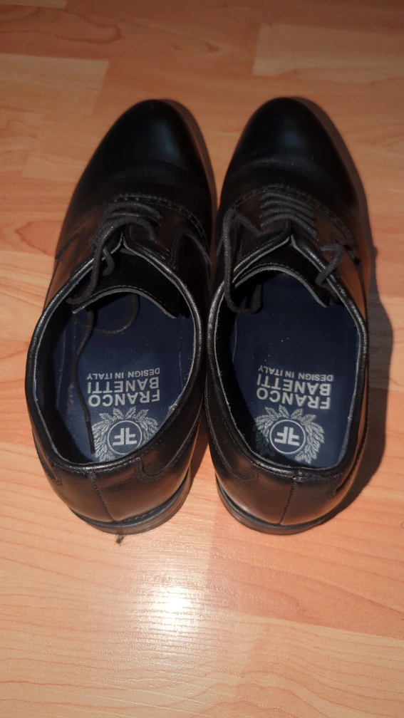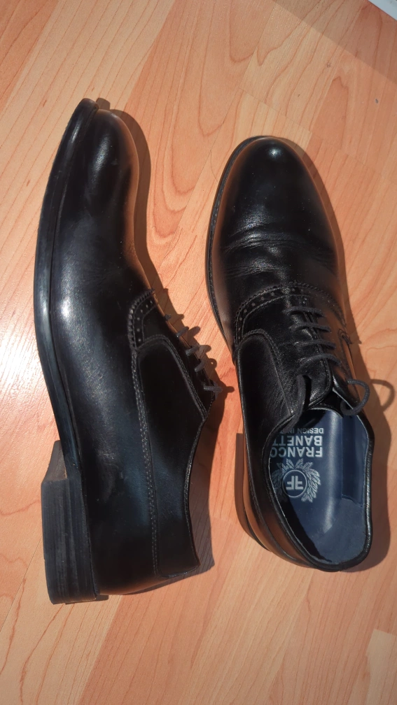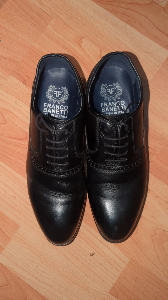 Selling a pair of Franco Banetti dress shoes! These black leather shoes are perfect for any formal occasion. They are in good condition and ready for a new home