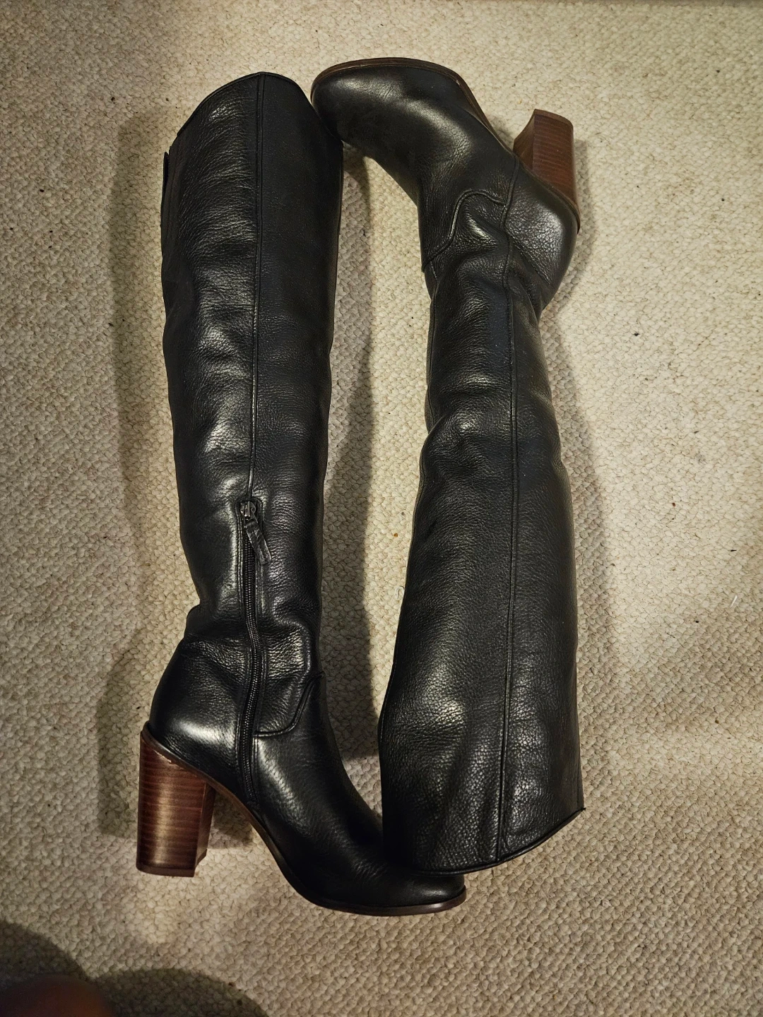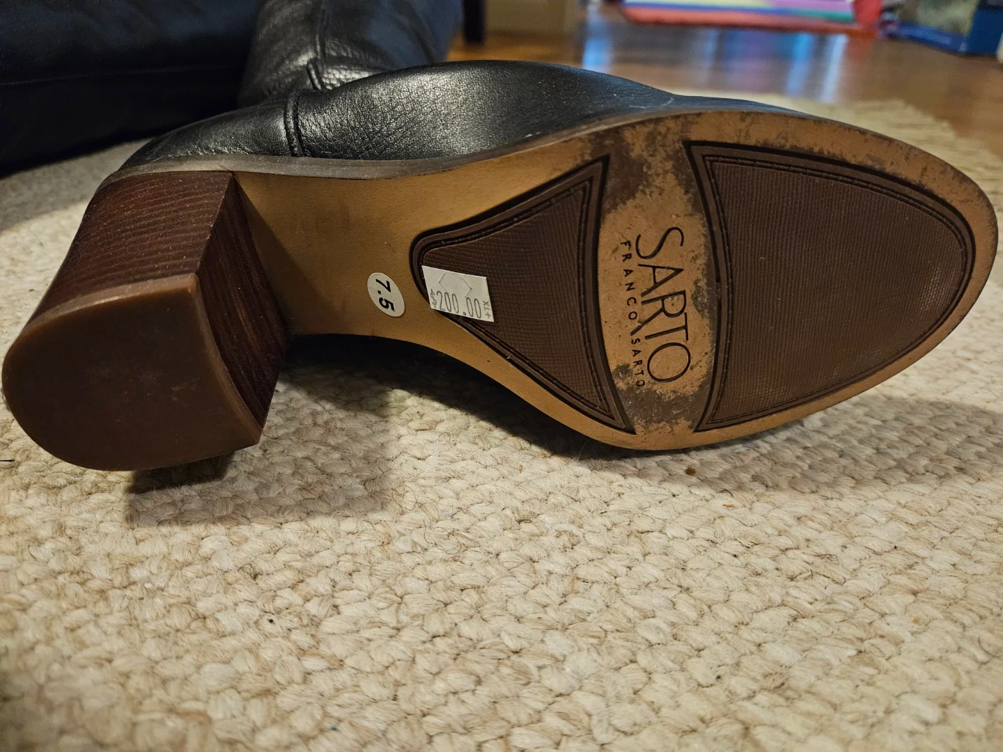23Selling a pair of Franco Sarto knee-high boots in black leather. They're a size 7.5. Originally bought for $200. They have a stylish block heel and are perfect for fall and winter!