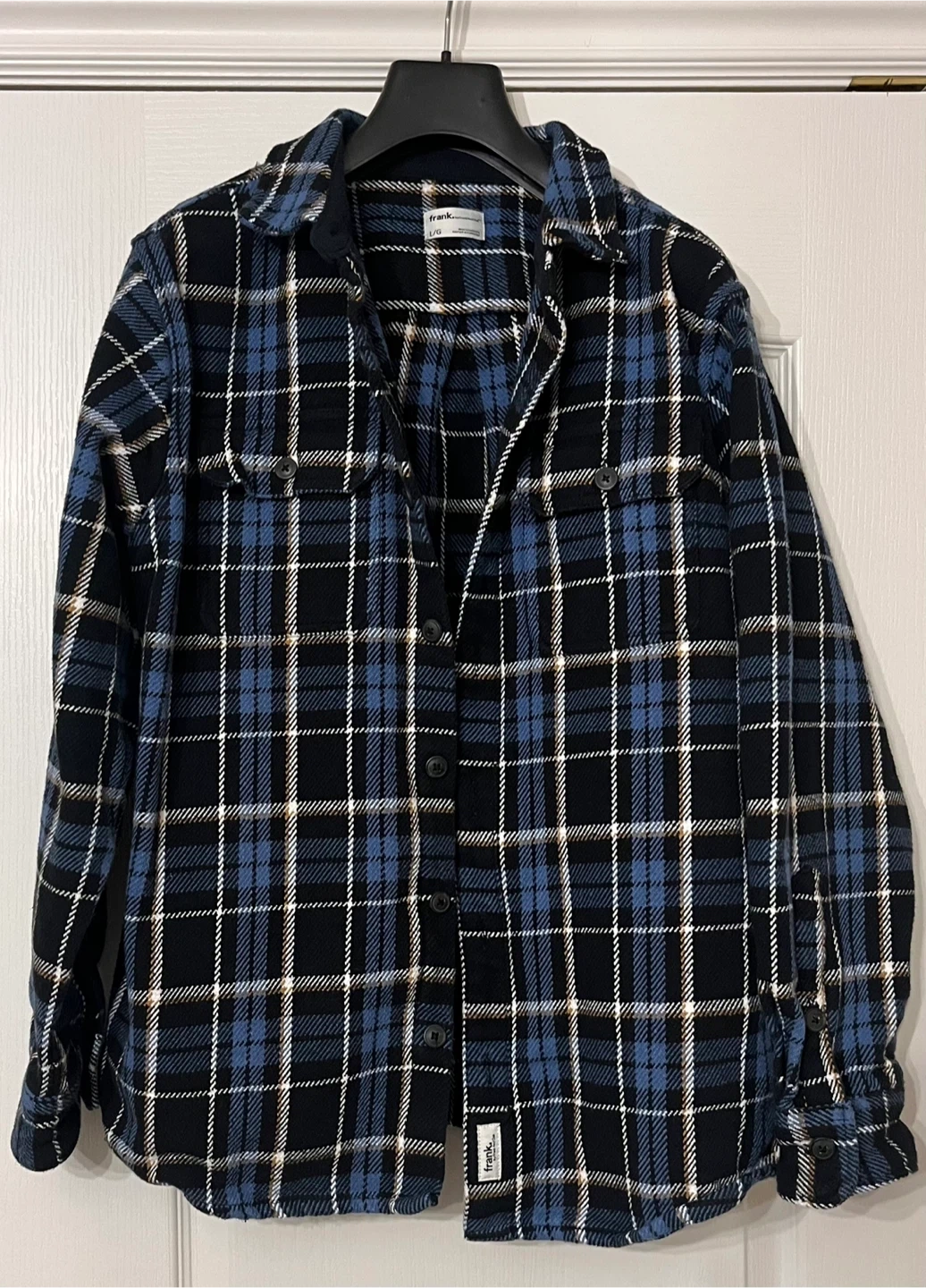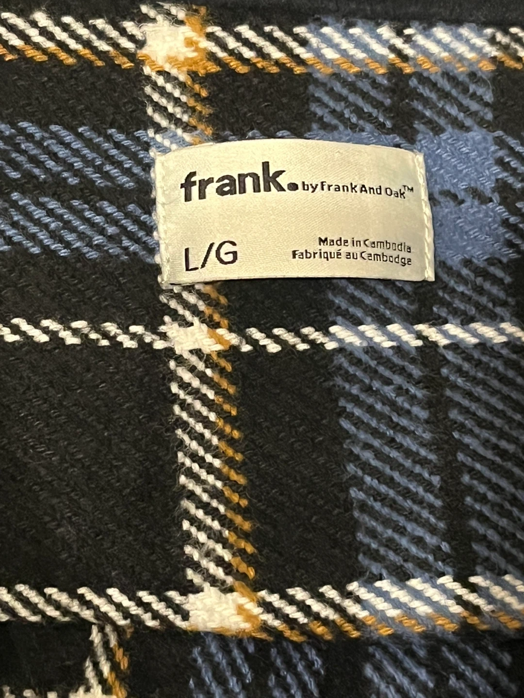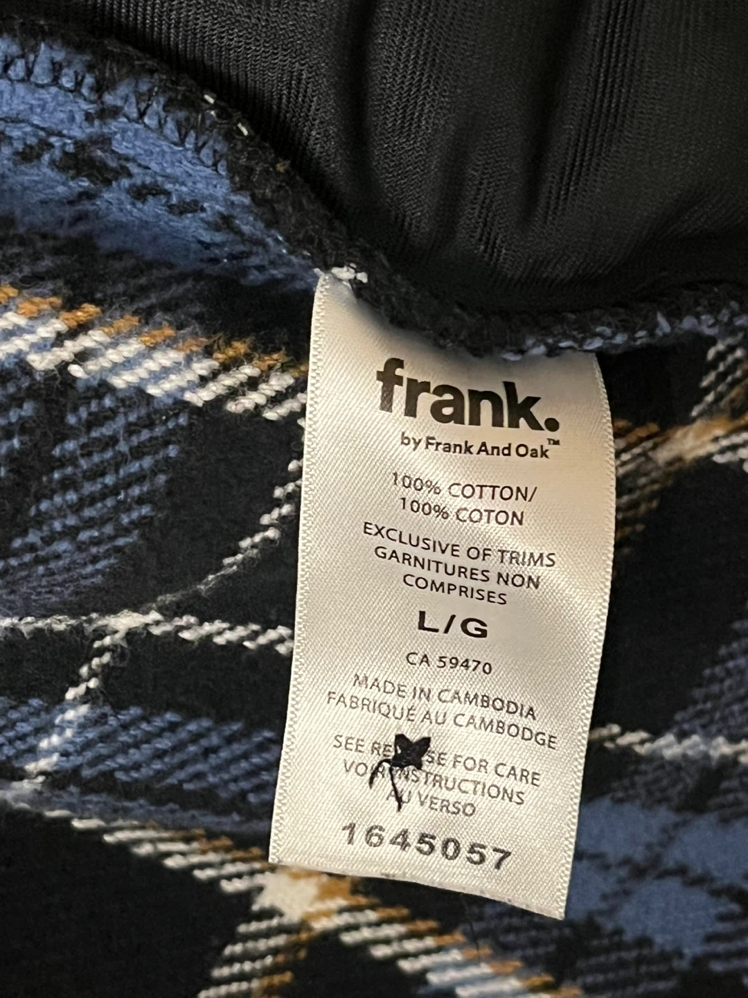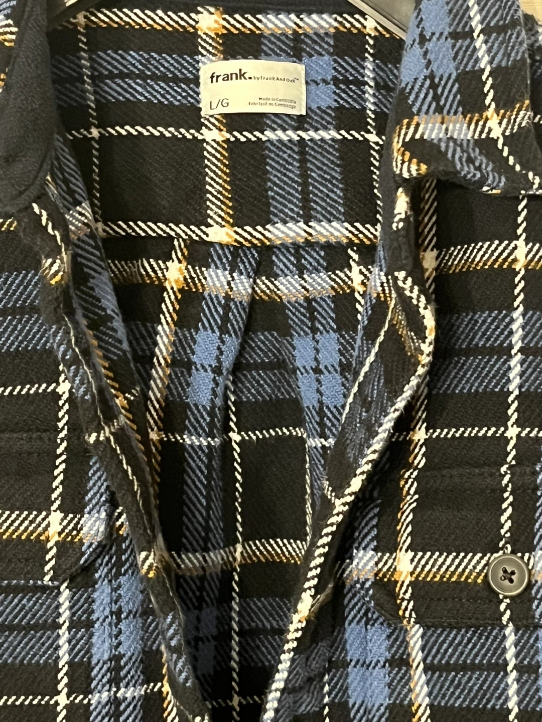 72Cozy Frank And Oak Shirt Jacket in a classic plaid pattern! It's a Men’s size Large and made from 100% cotton. Perfect for layering or wearing on its own. Practically Brand New.