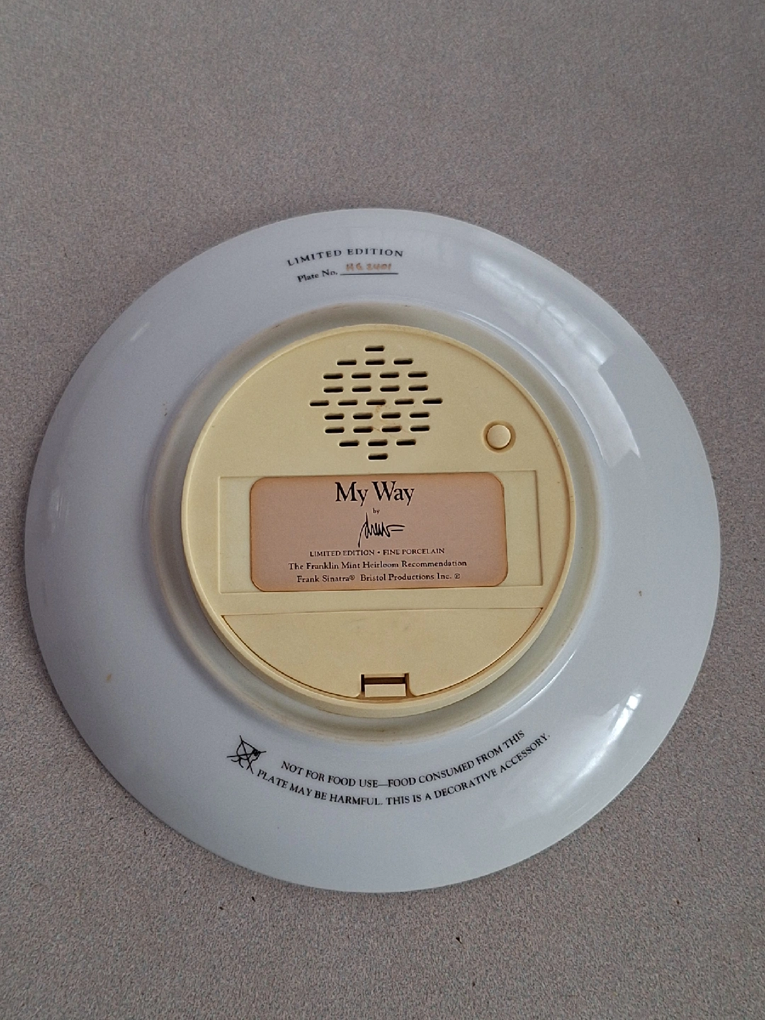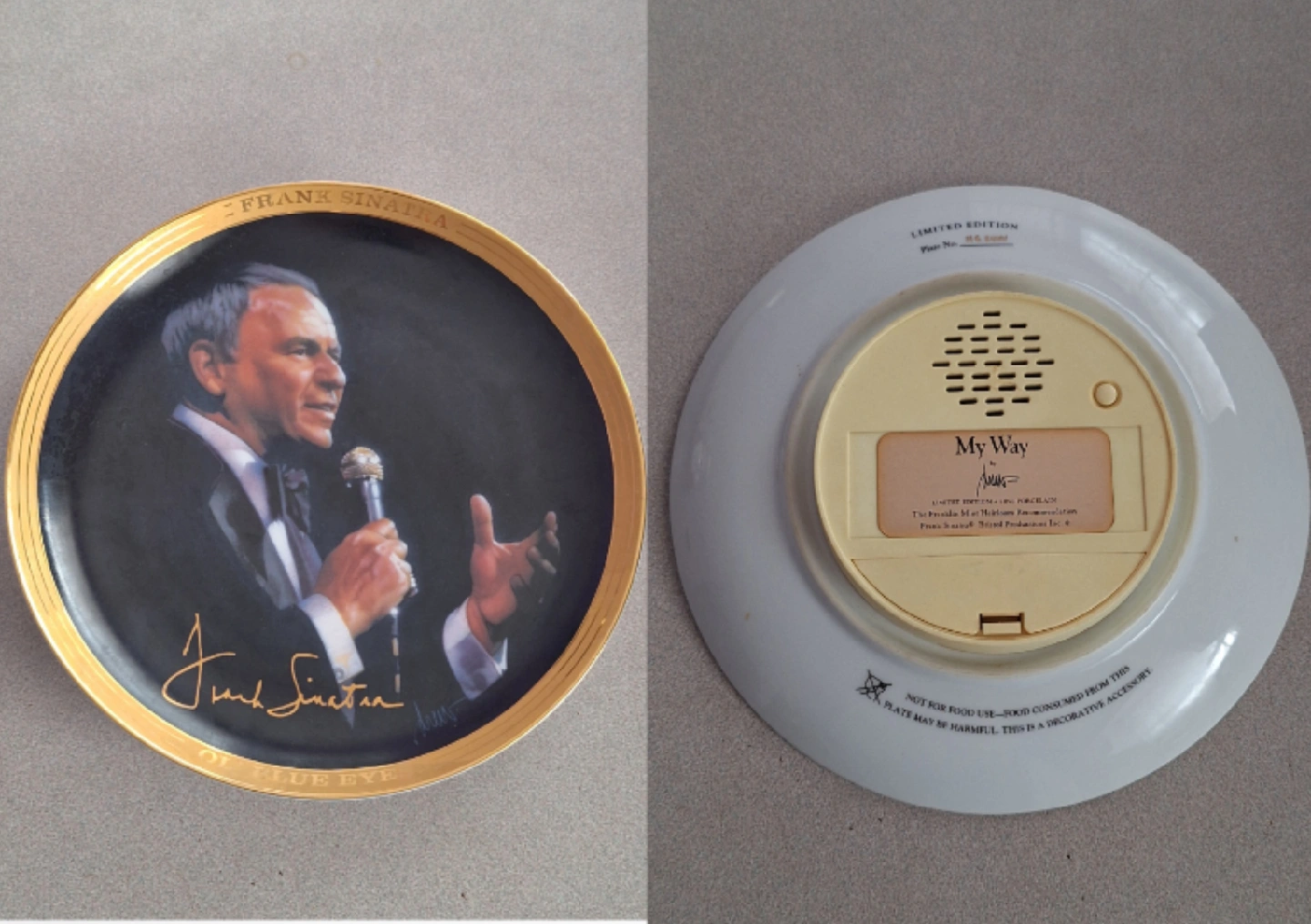 Selling a limited edition fine porcelain music plate featuring Frank Sinatra. It's a Franklin Mint Heirloom Recommendation from Bristol Productions Inc. Working condition.