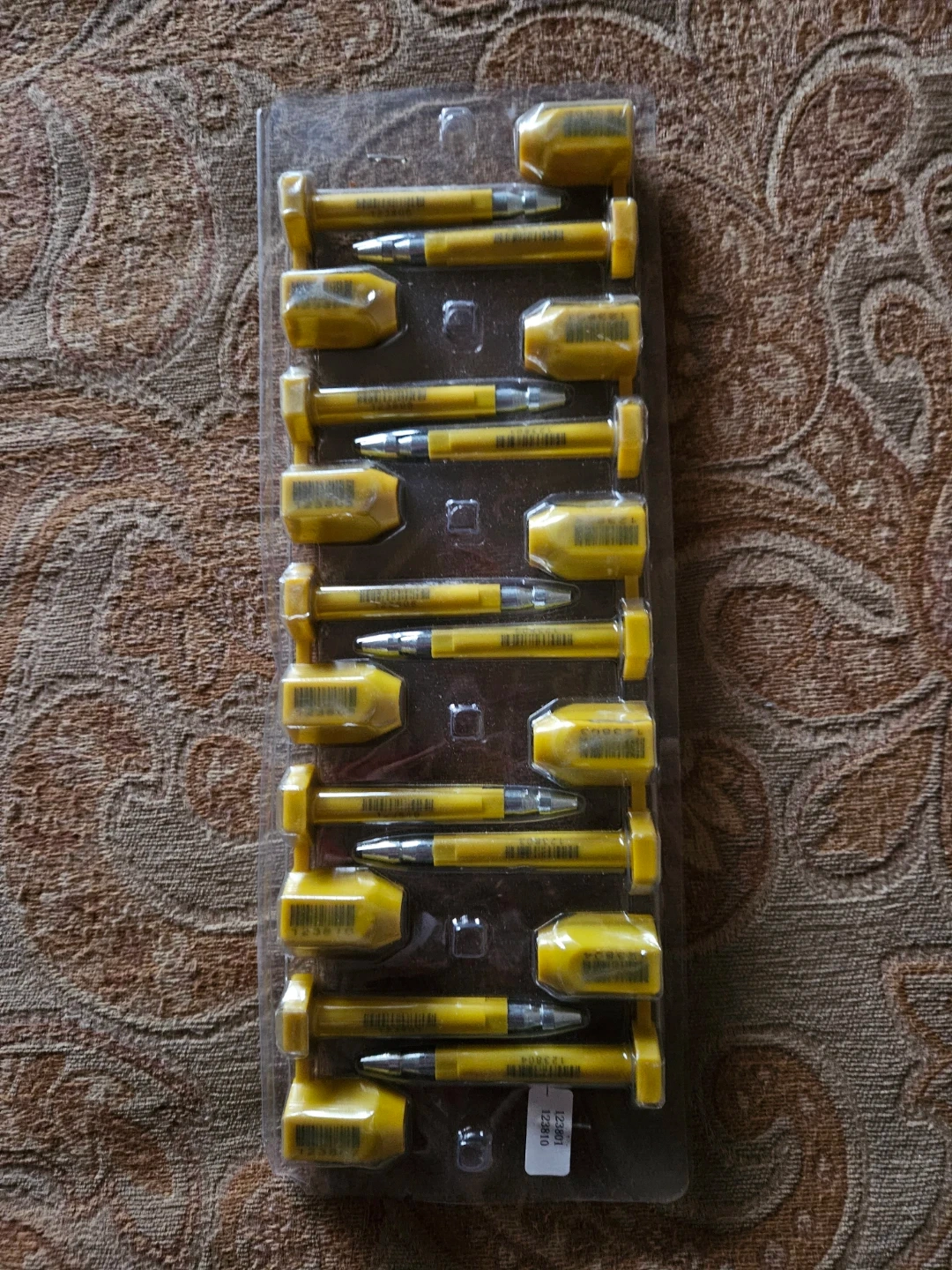 These are security seals in yellow. They're designed for tamper-evident sealing. Each seal features a unique serial number for tracking.