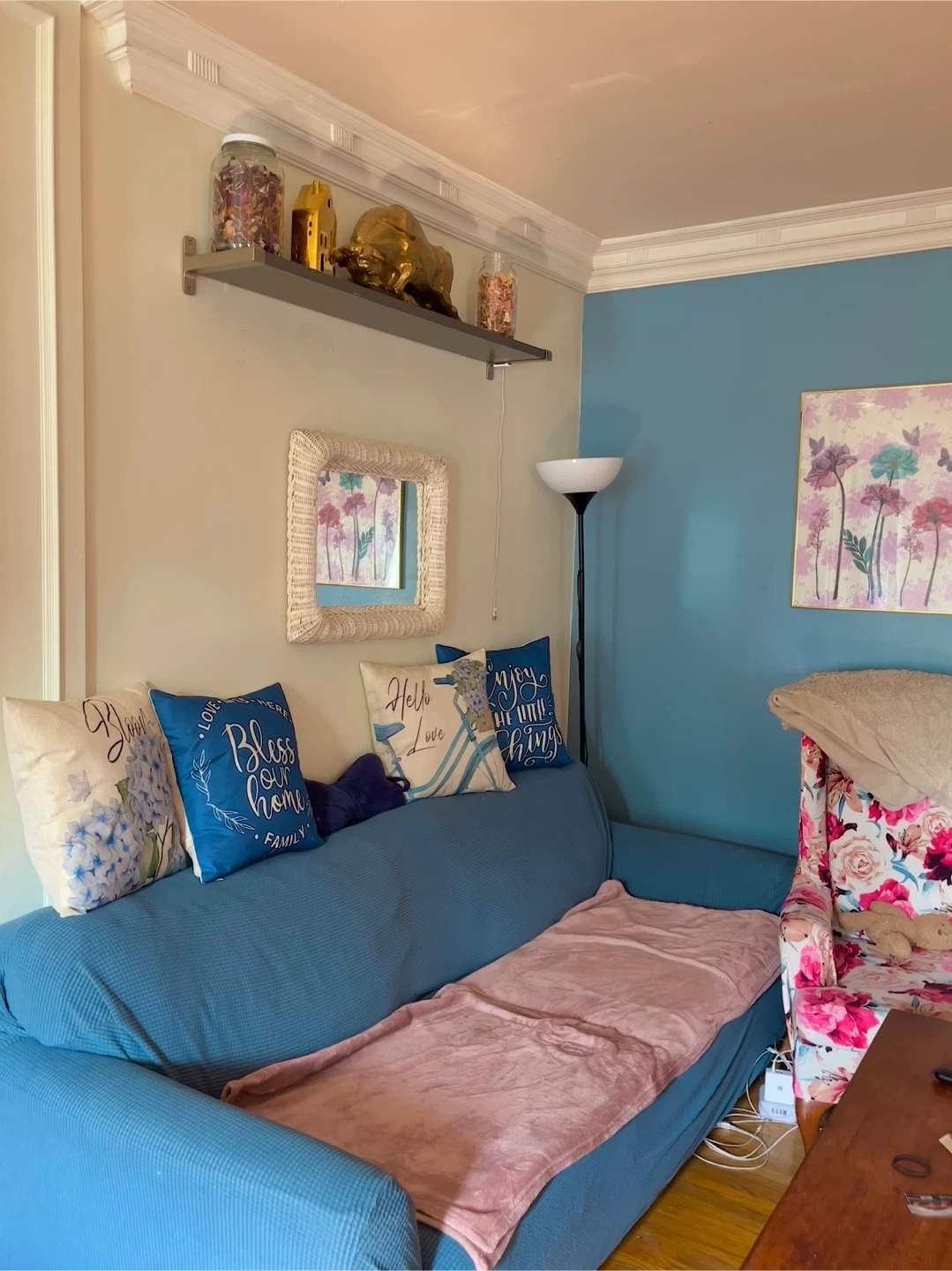 75Free comfy brown sofa! It comes with a blue cover for easy cleaning and maintenance. Perfect for a living room or den, it's in ok shape, recently shampooed, and ready for a new home. This is not a great couch, it’s an ok couch. Perfect for someone who needs a couch urgently. 3 seater. 80” long Must be able to pick it up yourself, by November 27 or it’s going to the curb.