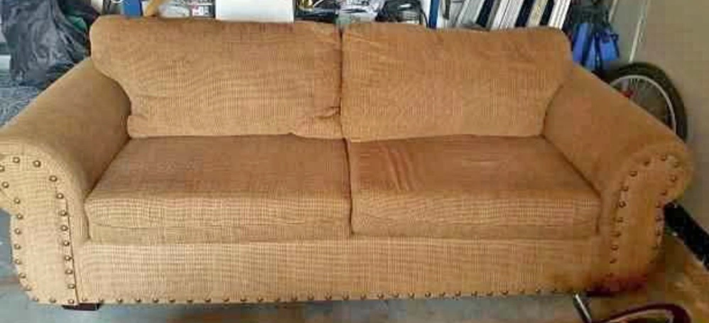 20Selling a comfy tan couch. It's in good condition and perfect for a smaller space or apartment. The fabric is a neutral tan colour, so it will easily match any decor. It's a great addition to any living room!