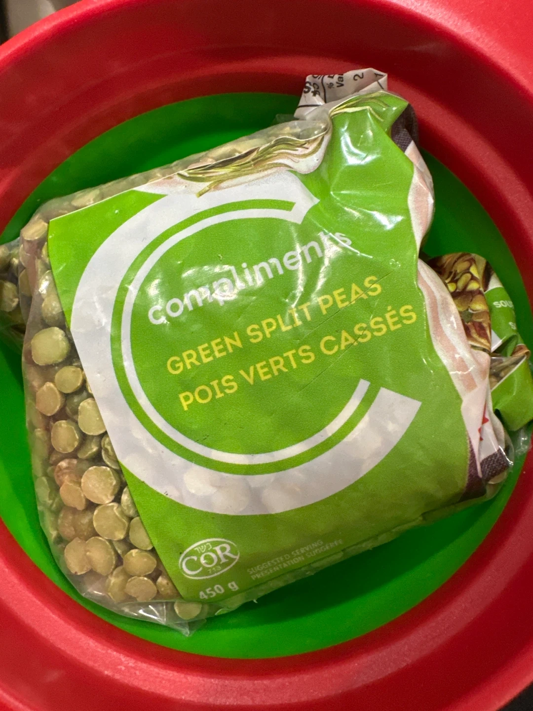 47Giving away a new bag of Compliments Green Split Peas! It's a 450g bag, perfect for making soup or other dishes. The bag is in great condition and ready for a new home. My kid doesn’t like them and I don’t care to make them. Looking for a better home.