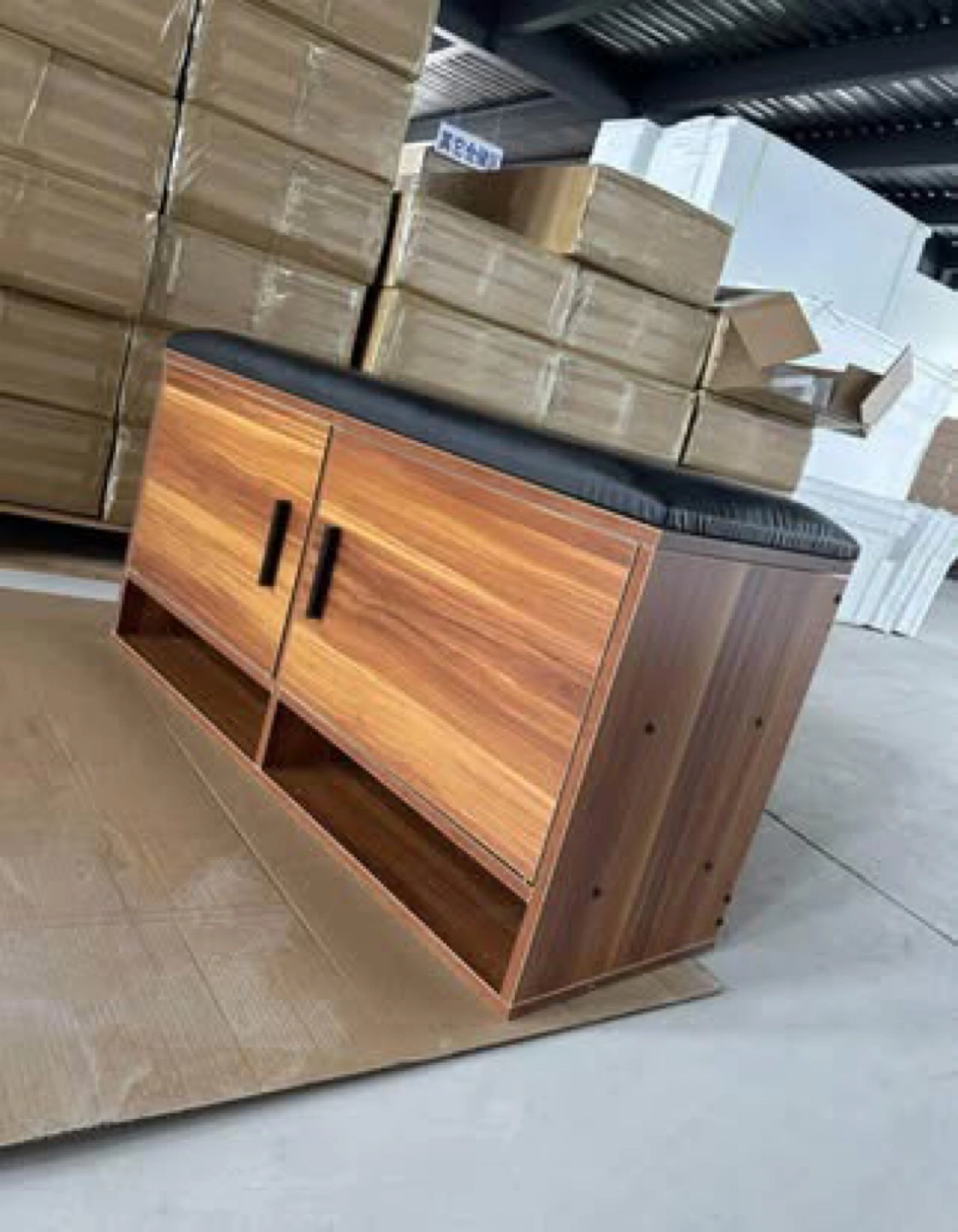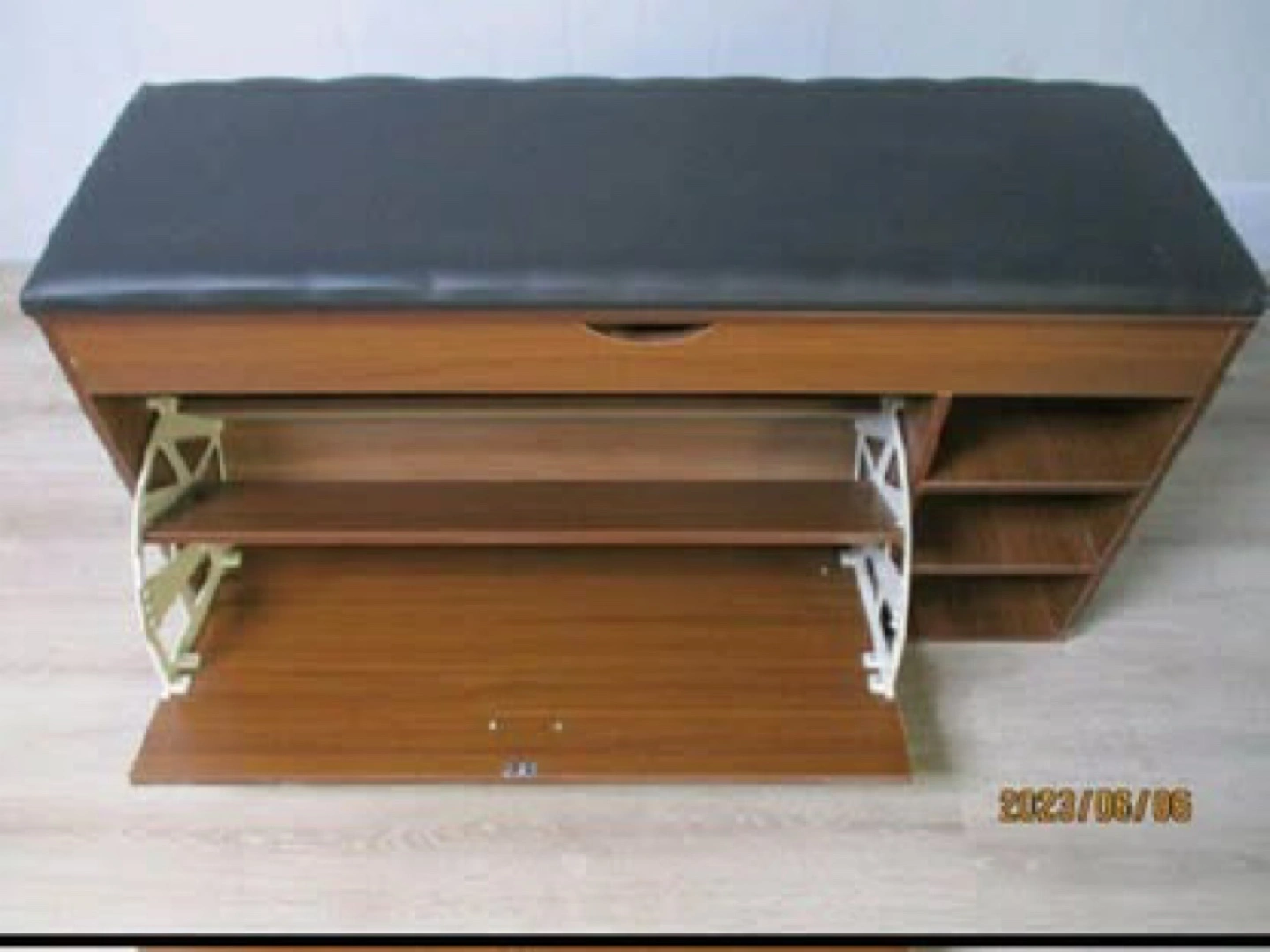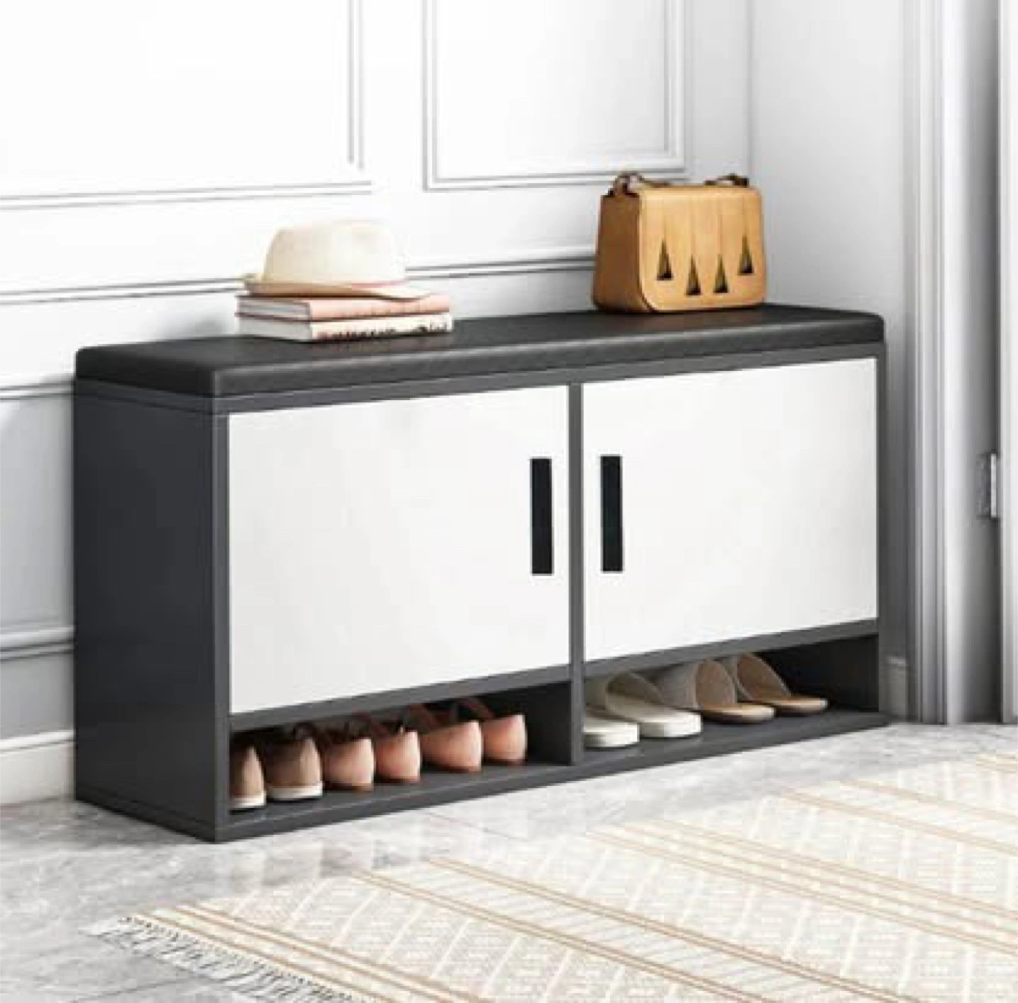 This is a handy shoe storage bench with a comfy seat on top. It's perfect for keeping your entryway neat and tidy. Made of high quality MDF board, which ensures longevity and durability, door design with robust handles for easy opening and closing. Layers have sturdy hinges for smooth movement. Simple and modern appearance that fits into your entryway, hallway, living room or porch, provide and space saving. It comes with a Shoe cabinet bench with a soft and comfortable PU cushion top, You can sit on while putting on shoes. It also has an extra storage space at the top. ►Specifications ►Condition: Brand New in a box. ►Material: Class A (E1) MDF and aluminum alloy handles. Bench Artificial Leather. ► Two internal layers and three external boxes and extra top storage space. ►Shoe cabinet bench with soft and PU cushion. ► Easy to clean ►Assembly: Very easy, it comes with an assembly instructions manual. ►Measurements: 100*35*51cm 39.4x13.8x20.1in And also, 100x30x51 cm Colours: brown, walnut, black, white-black, oak