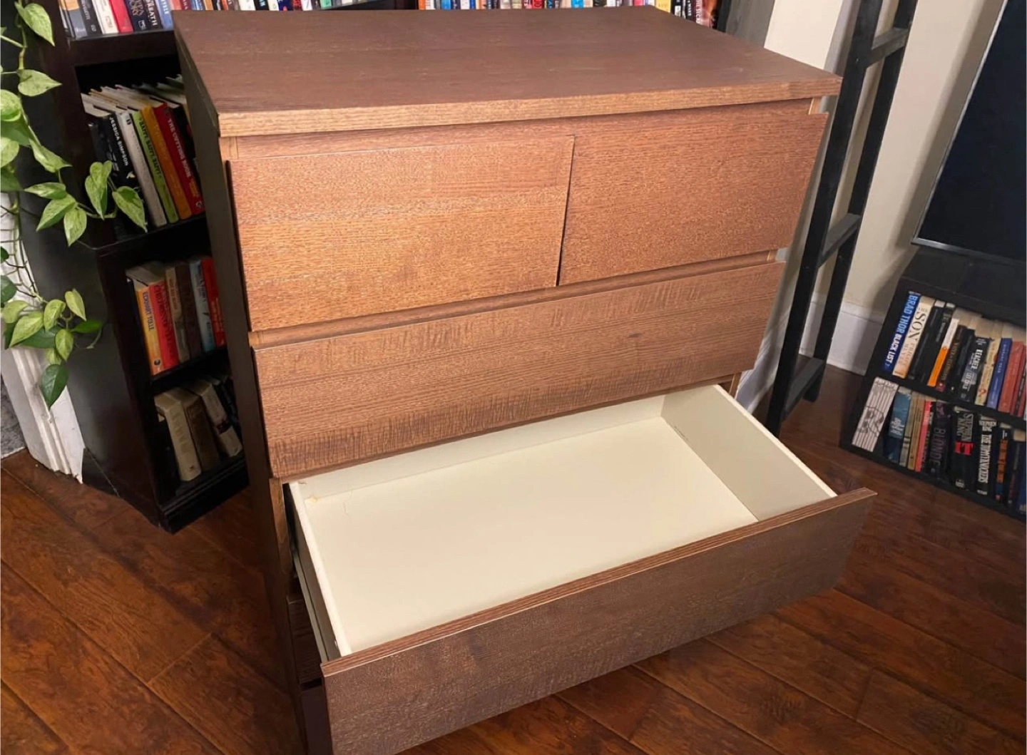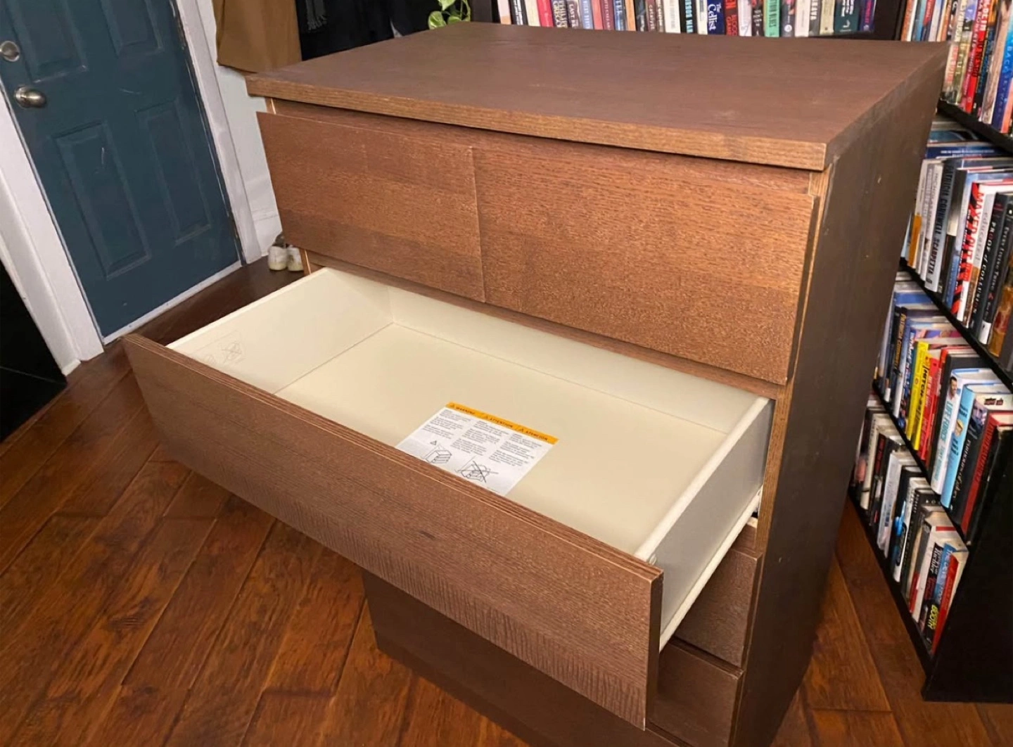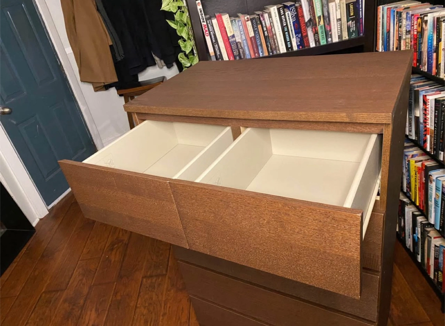 81Brown tall boy dresser in modern styling. Excellent shape, like new, which also would save you a couple hours not needing to assemble! All the drawers work perfectly. Drawers stop when fully retracted. All the drawers are clean. From a smoke-free / pet-free household. No odours. Delivery is included in the price, available throughout HRM. $180 Exact Measurements: Height: 48.5 inches (or 4 FT & 0.5 inches). Width: 31.6 inches (or 2 FT & 7.6 inches). Depth: 19 inches (or 1 FT & 7 inches). Fine print: Delivery Only. Free delivery within HRM only. Item is released from secure storage. Right to refuse on delivery. This item includes delivery/handling by 2 people to carefully place it where you ask.