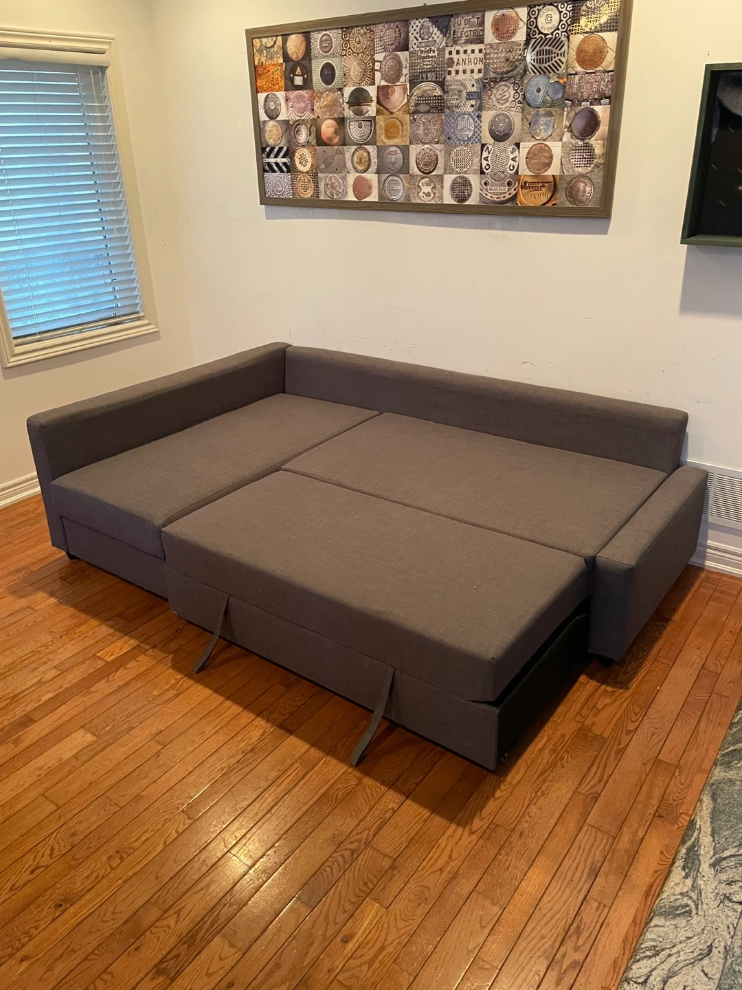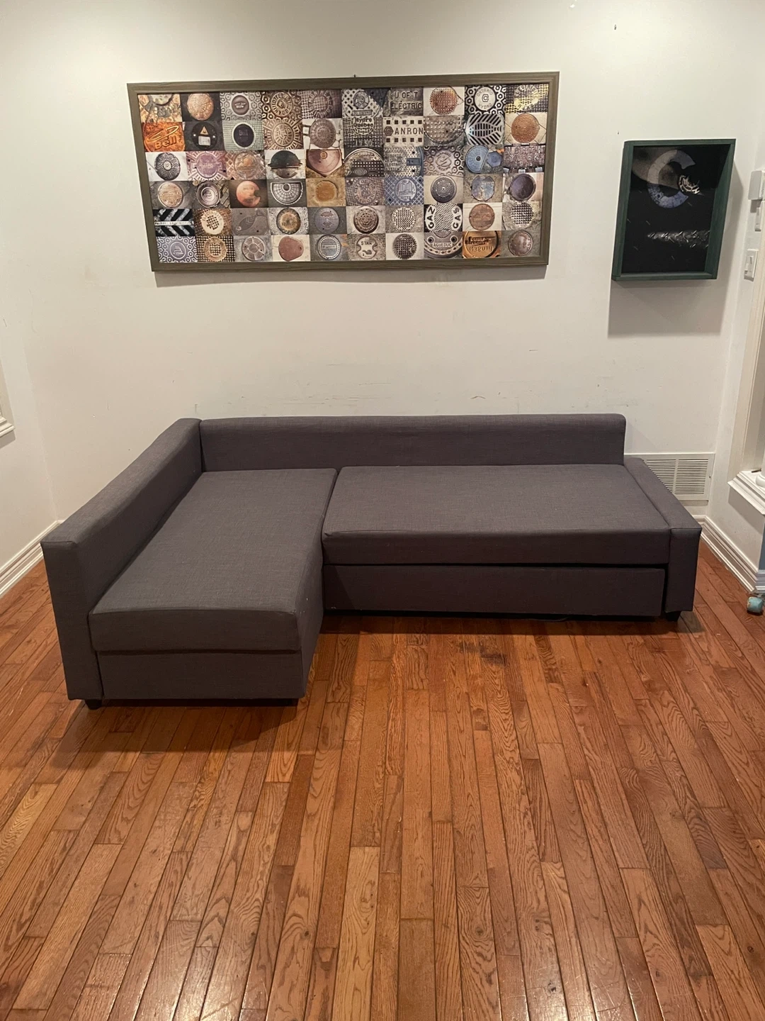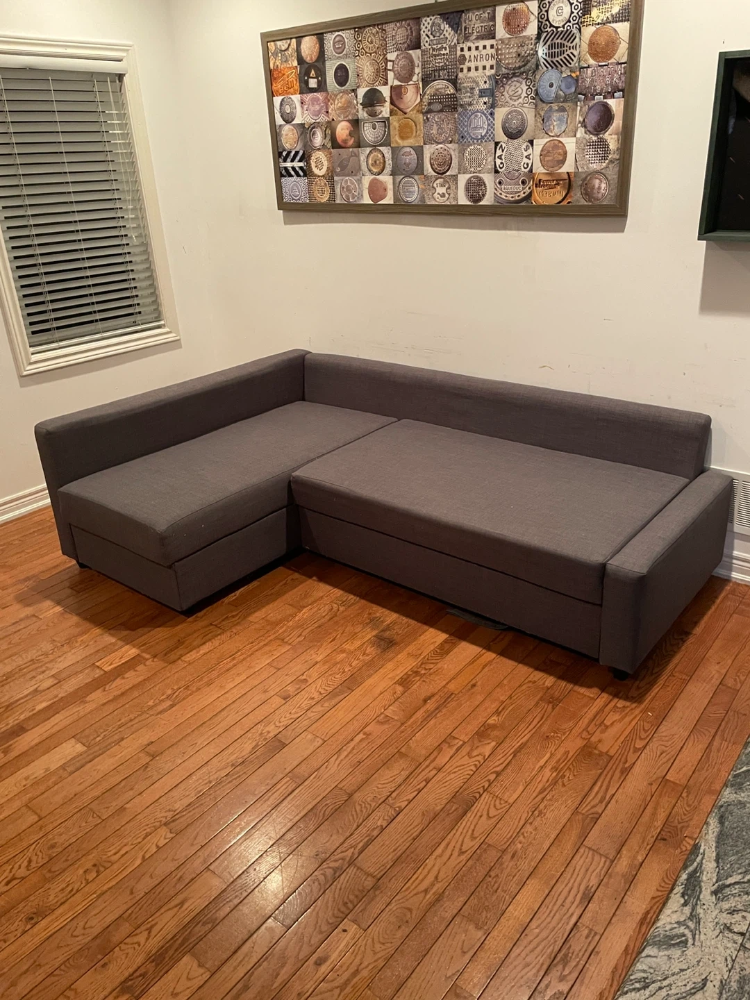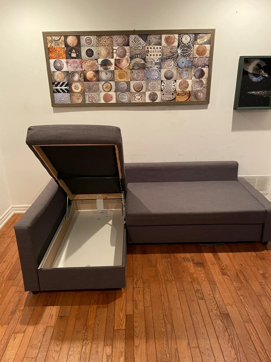 Selling a comfortable grey sectional sofa with storage. It's in great condition and would be a perfect addition to any living room or den. It's a stylish and functional piece of furniture! I am willing to deliver for free within 20km from my house. If you have any questions please let me know.