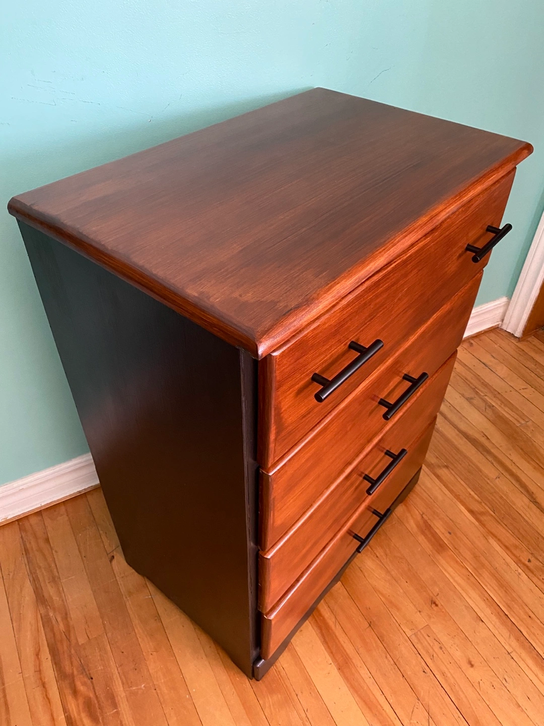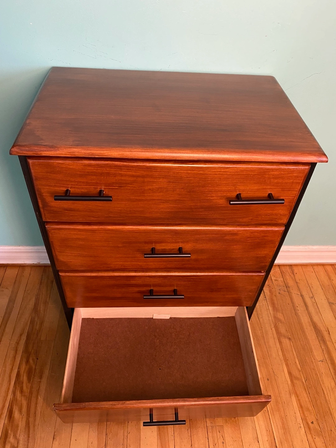 81Tall boy dresser in excellent shape. Made from maple hardwood. The exterior is completely refinished. All the drawers slide with ease, and all the drawers are clean. Smoke-free / pet-free household and no odours. Delivery is included in the price, available throughout HRM. Right to refuse on delivery, please inspect on delivery to ensure the item matches the description and is to your personal satisfaction. $200 Exact Measurements: Height: 36.5 inches (or 3 FT & 0.5 inches). Width: 26.8 inches (or 2 FT & 2.8 inches). Depth: 17 inches (or 1 FT & 5 inches).