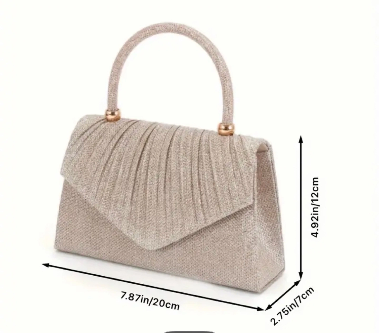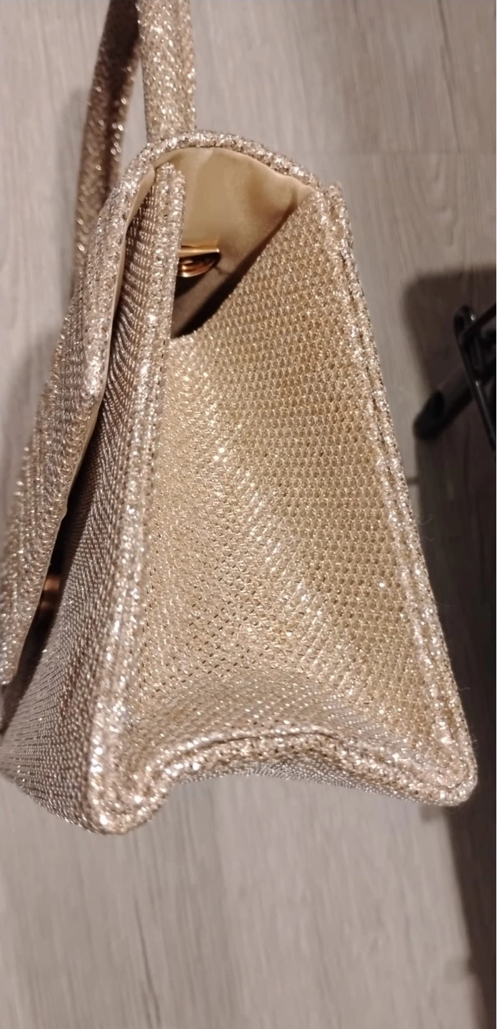 This is a cute gold evening bag! It’s brand new, but it came a little squished on the side but still looks good