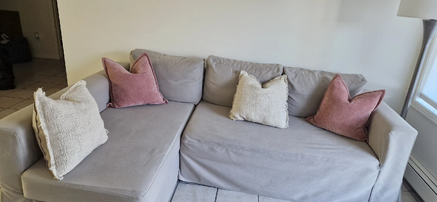 Show allGrey Sectional Couch with Ottoman & Round Table