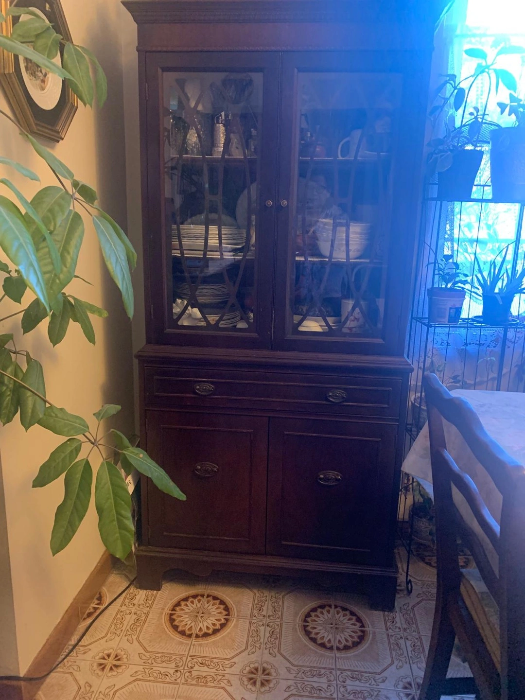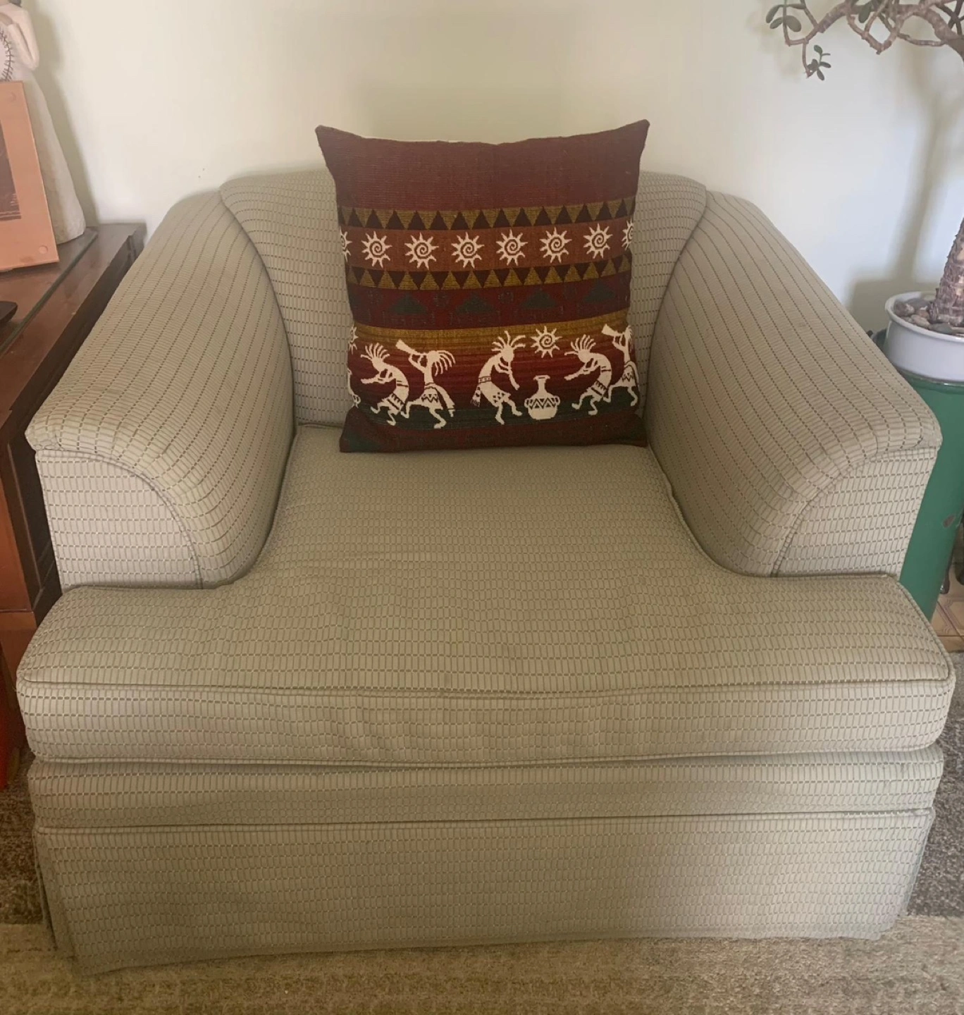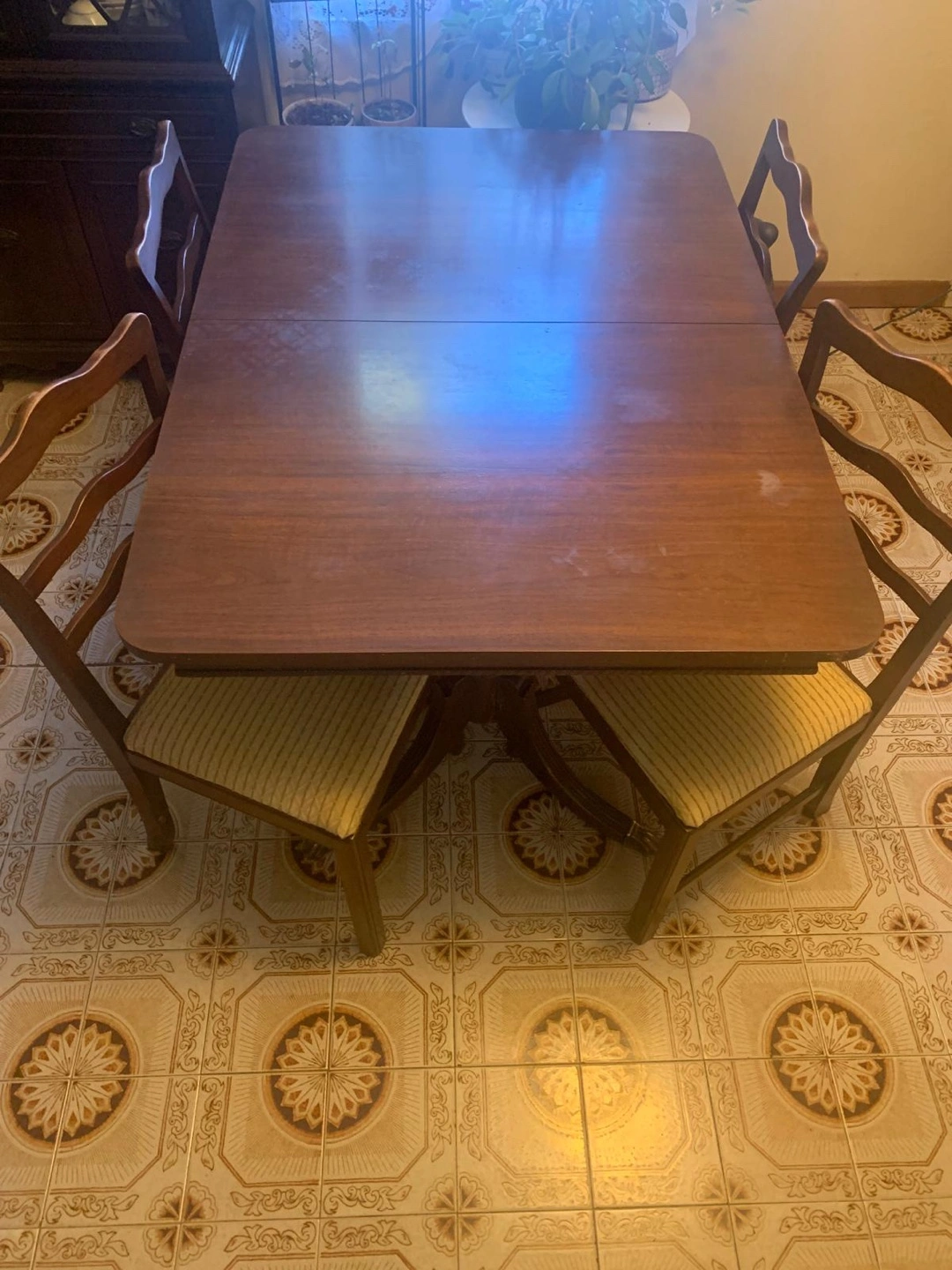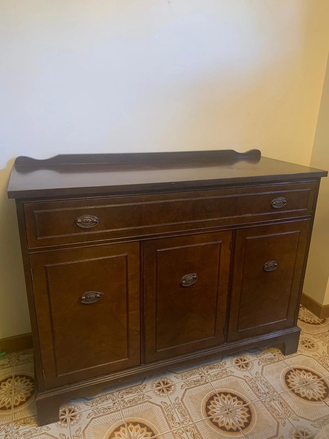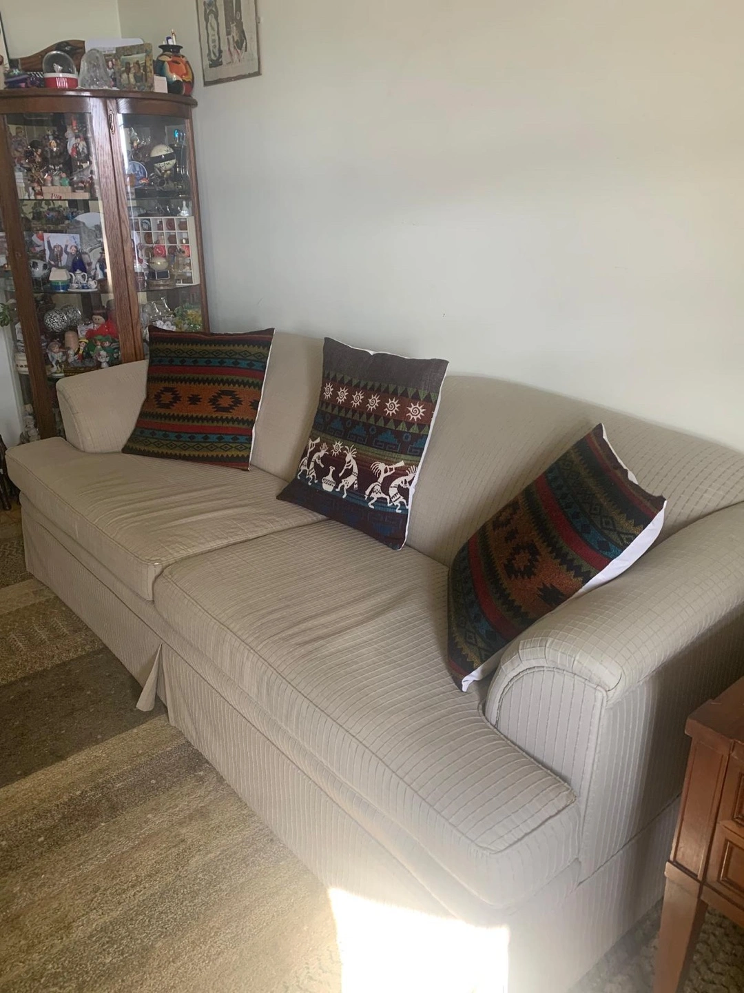 49For the next 4 days need to give away urgently. Beige fabric sofa and armchair. Matching striped upholstery. Four chairs and expandable dining table. Buffet table and China Cabinet included Good condition. Pick up only.