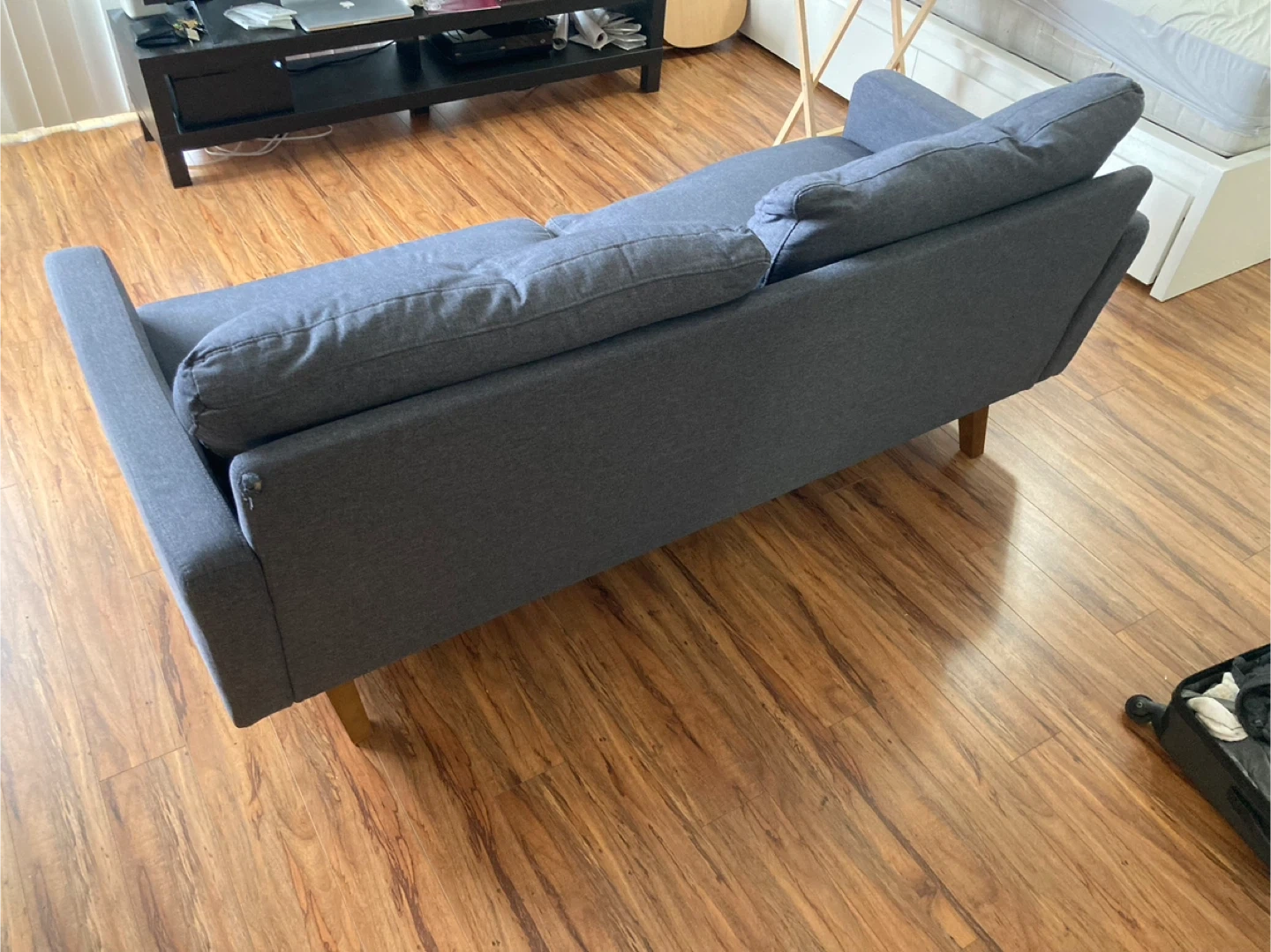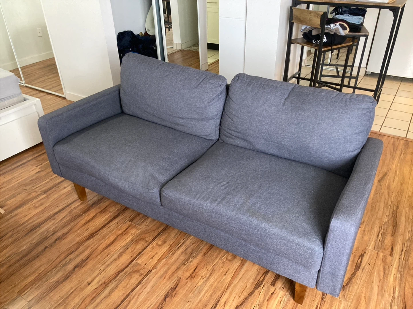 75Free couch! Yippie! I just need someone willing to pick it up…hell I can throw in $25 or more for you to pick it up! Quite comfy, one of the cushions does sag a bit in the front, as you can see from the photo. Can toss in two little pillows if you’d like!
