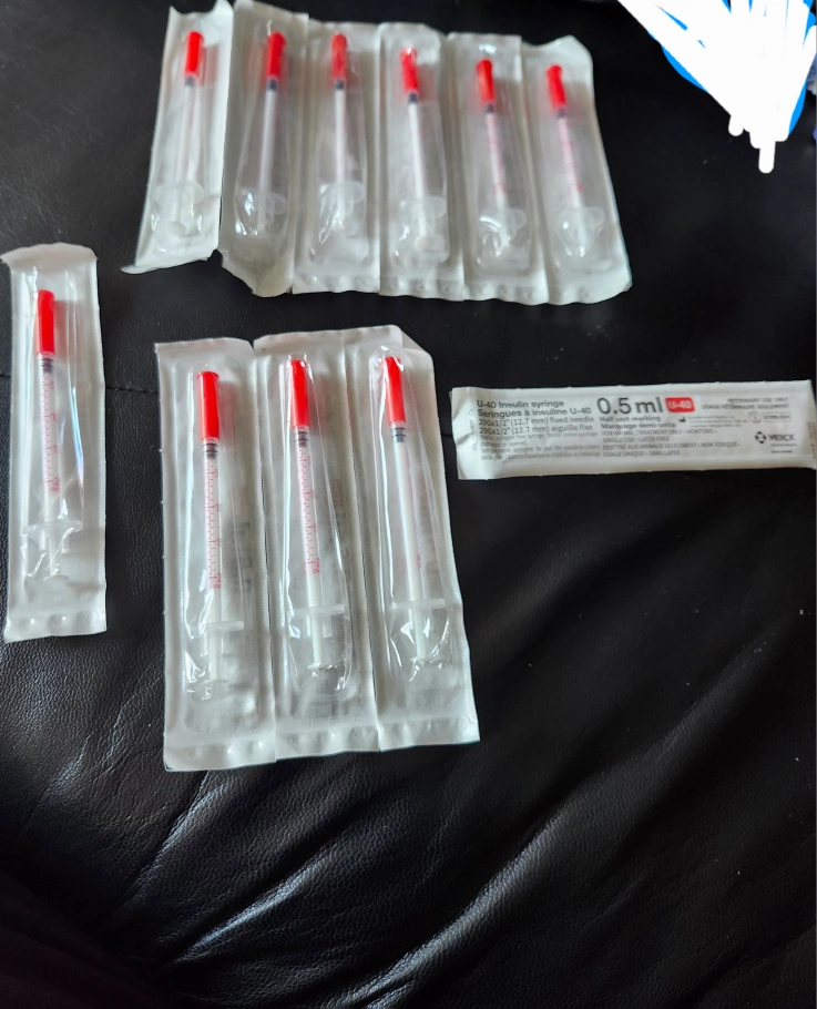 🤎 Free U-40 Insulin syringes, each with a 0.5 ml capacity. They come with 29G x 1/2" (12.7 mm) fixed needles and half-unit markings. These syringes are latex-free and intended for single use. (Pet syringes). Never used, sealed. (11 syringes, free)