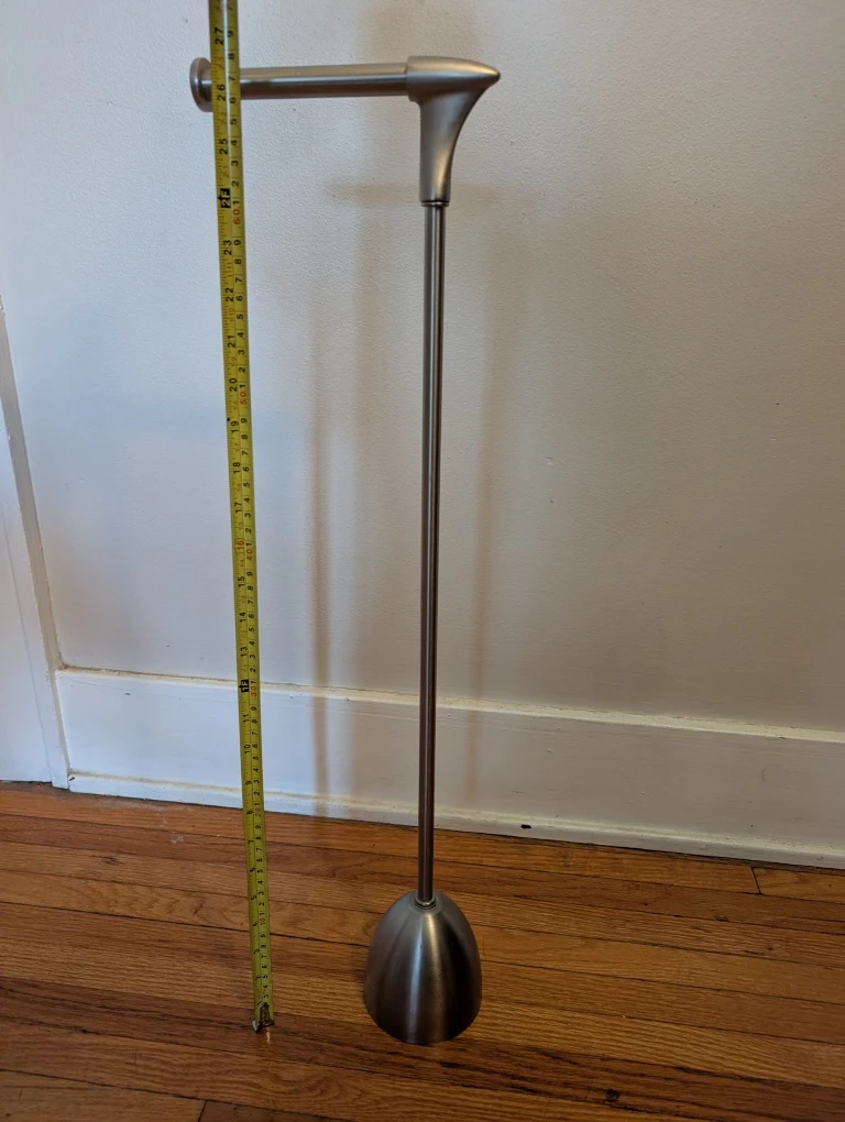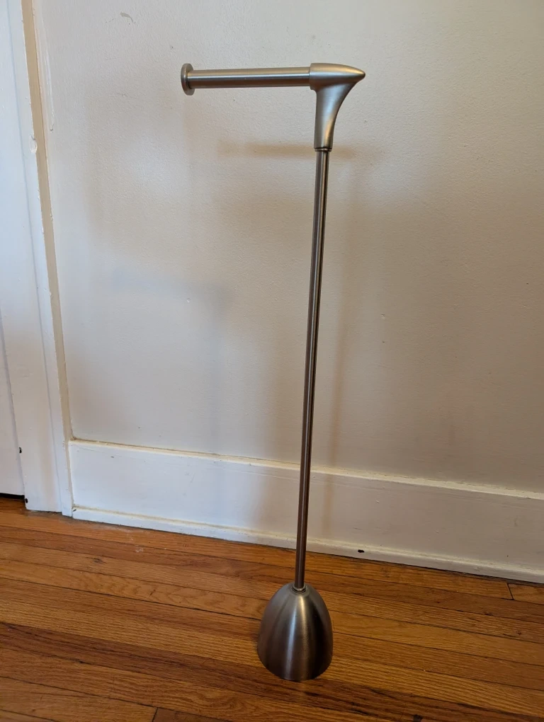 10Selling a freestanding toilet paper holder. It's approximately 27 inches tall.