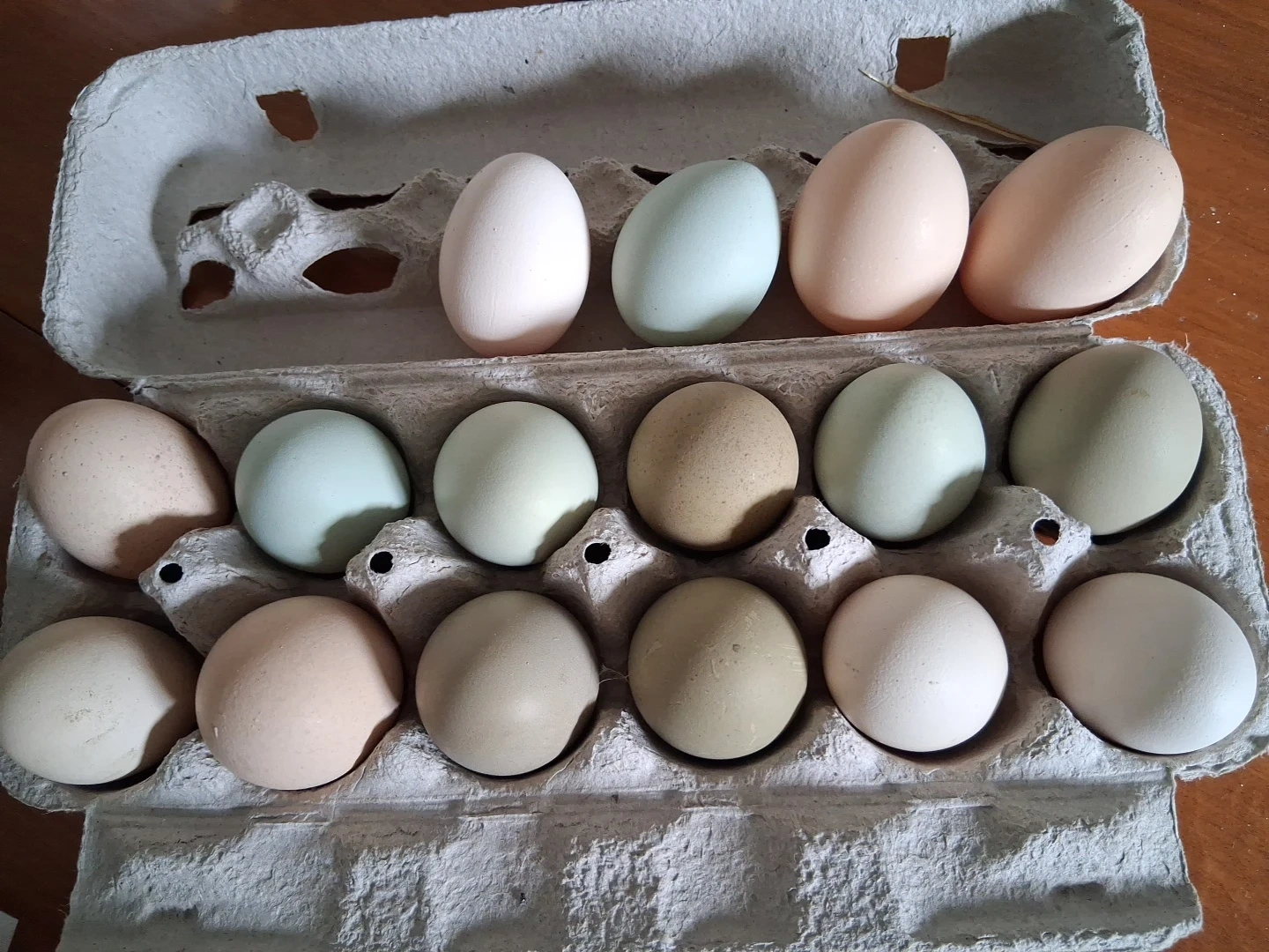 65Freshly laid eggs from my happy hens! You'll get a mix of beautiful colours like blue, green, brown, and pink. Perfect for baking or making a delicious breakfast $6 per dozen Fertilized Eggs for incubating also available $15 per dozen