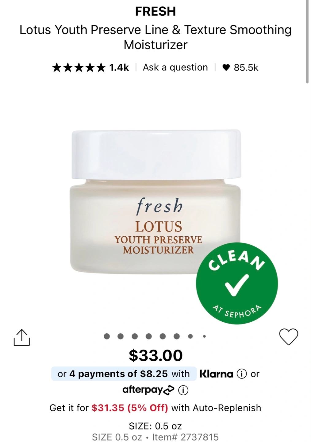 Selling a Fresh Lotus Youth Preserve Line & Texture Smoothing Moisturizer. It's a 0.5 oz size. Originally bought for $33.00