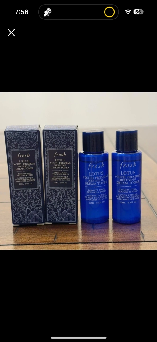 18I'm selling two bottles of Fresh Lotus Youth Preserve Refining Dream Toner. Each bottle contains 20ml (0.6 fl oz). They target tone, texture, and pores. Perfect for a refreshing addition to your skincare routine! 2 for $15.