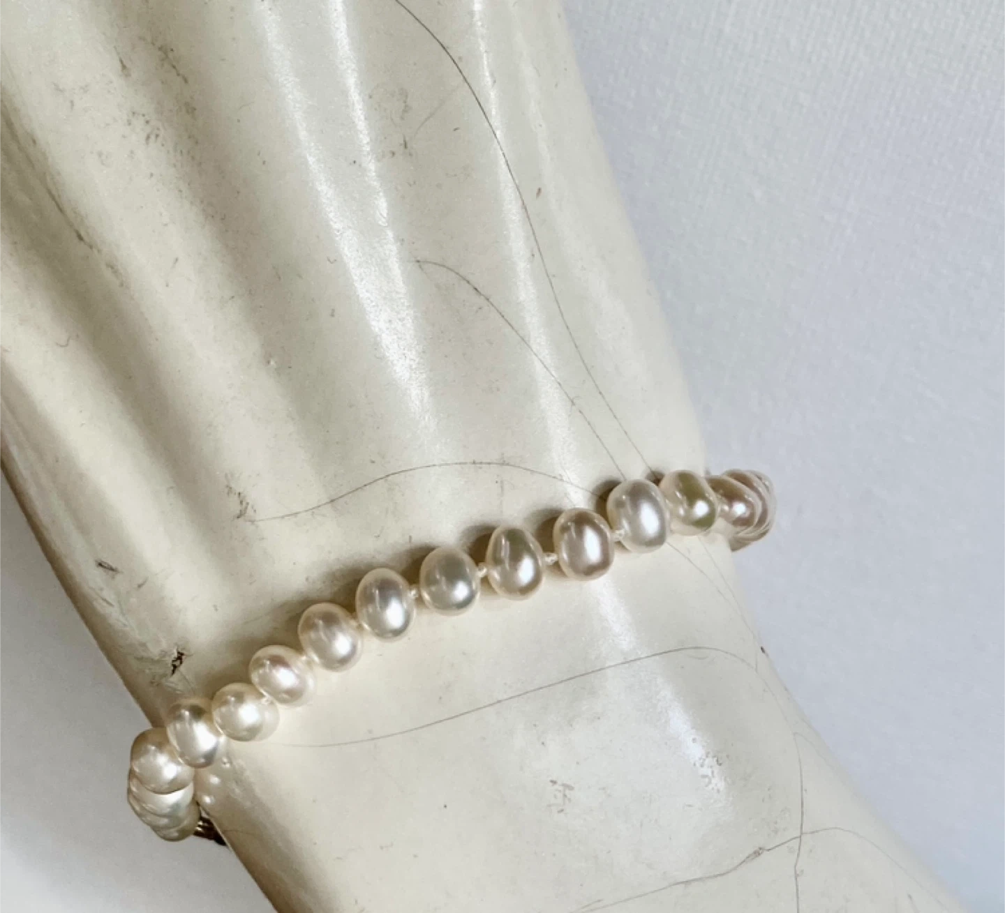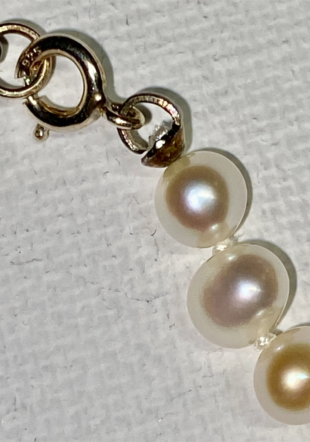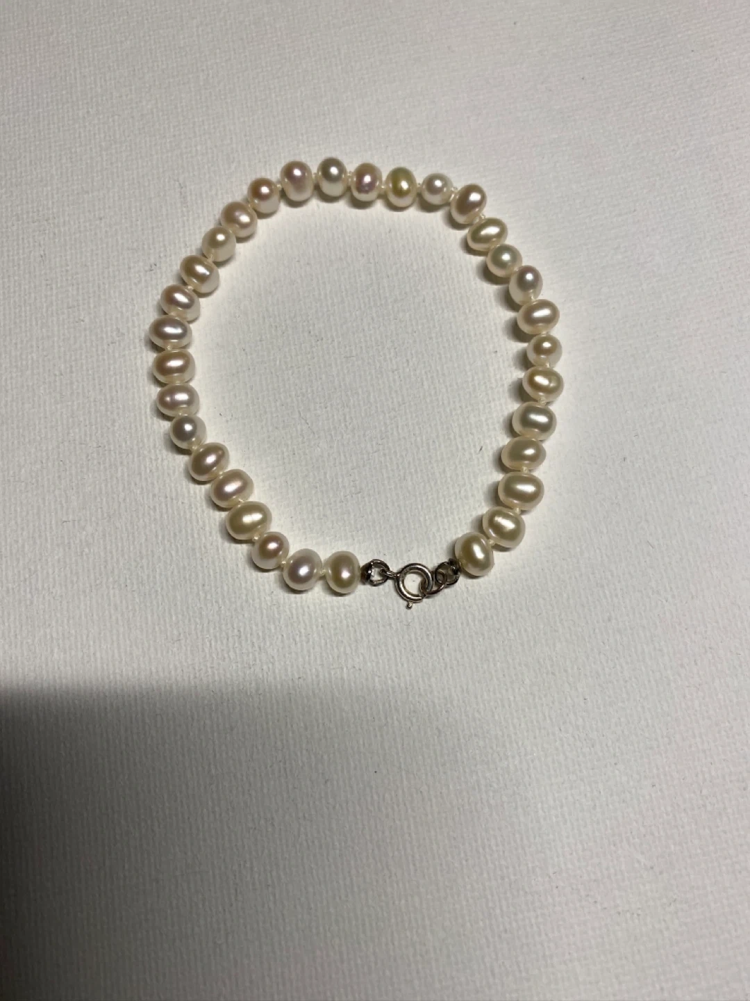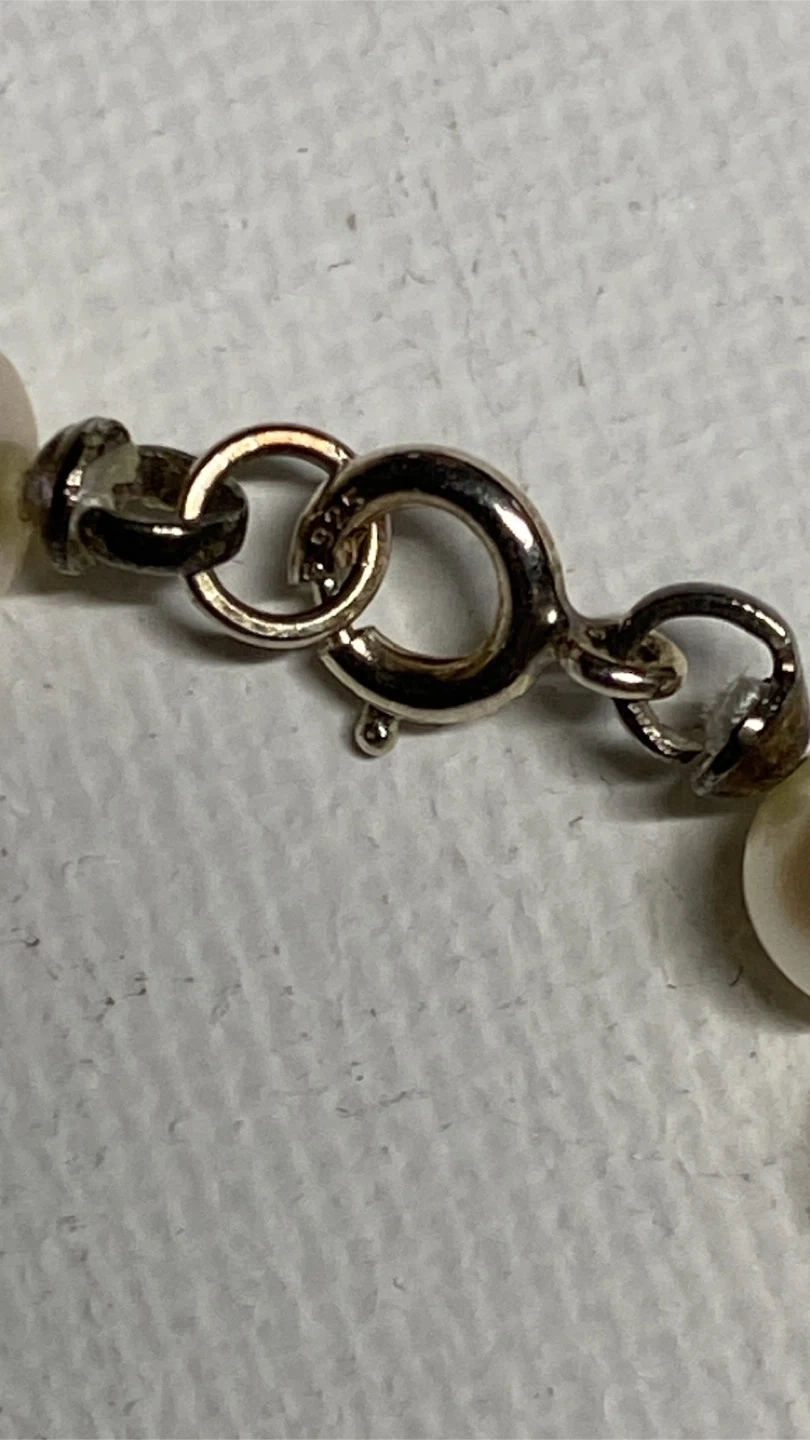 Perfect for a special occasion or just to dress up your everyday look! Fresh water pearls, individually knotted, stamped sterling spring ring closure, measures 7.5 inches long. Never been worn.